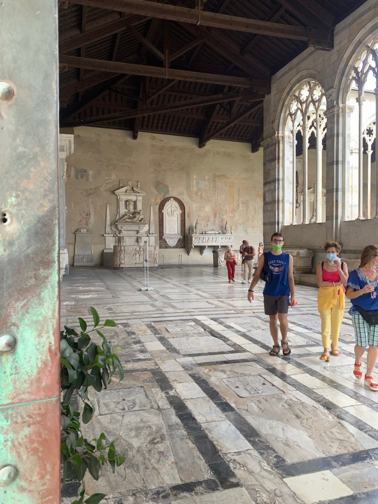 As we waited (inside a building) in line to buy ticket we were smooched up against others! Then we got to talking to the attendants see waited and we realized then that we forgot our vaccination cards. we could wait for over an hour (that’s how long the line was) inside the museum to buy tickets but we couldn’t buy them to view the museum because we didn’t have a green card or proof of vaccination. So we headed back to beautiful Lucca!