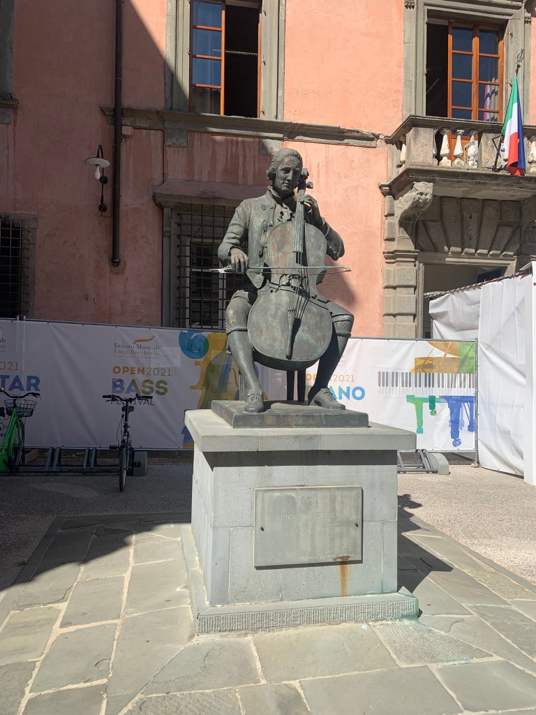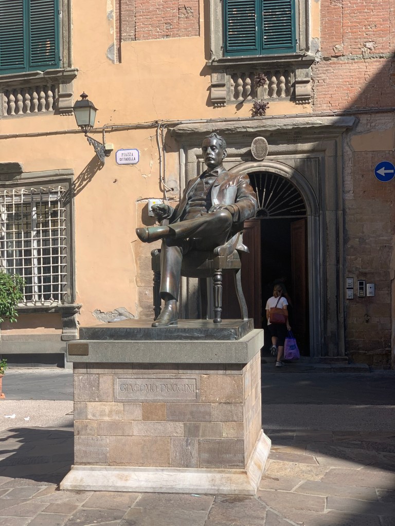 The Giacomo Puccini statue in his Piazza where his childhood home was in Lucca.
