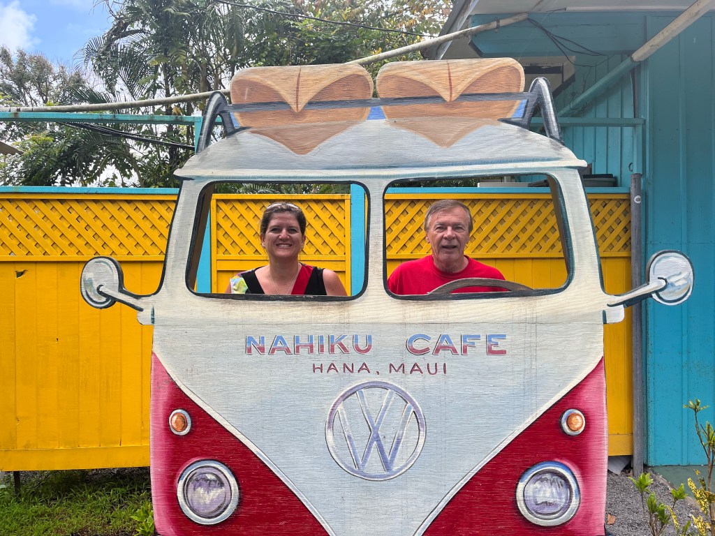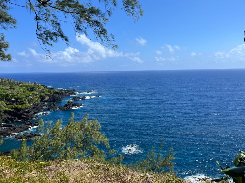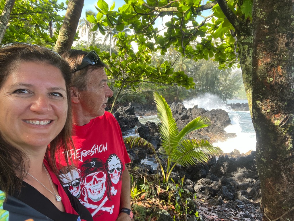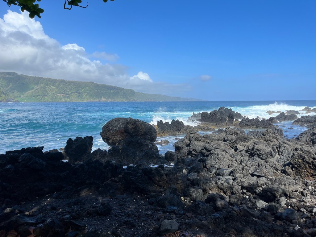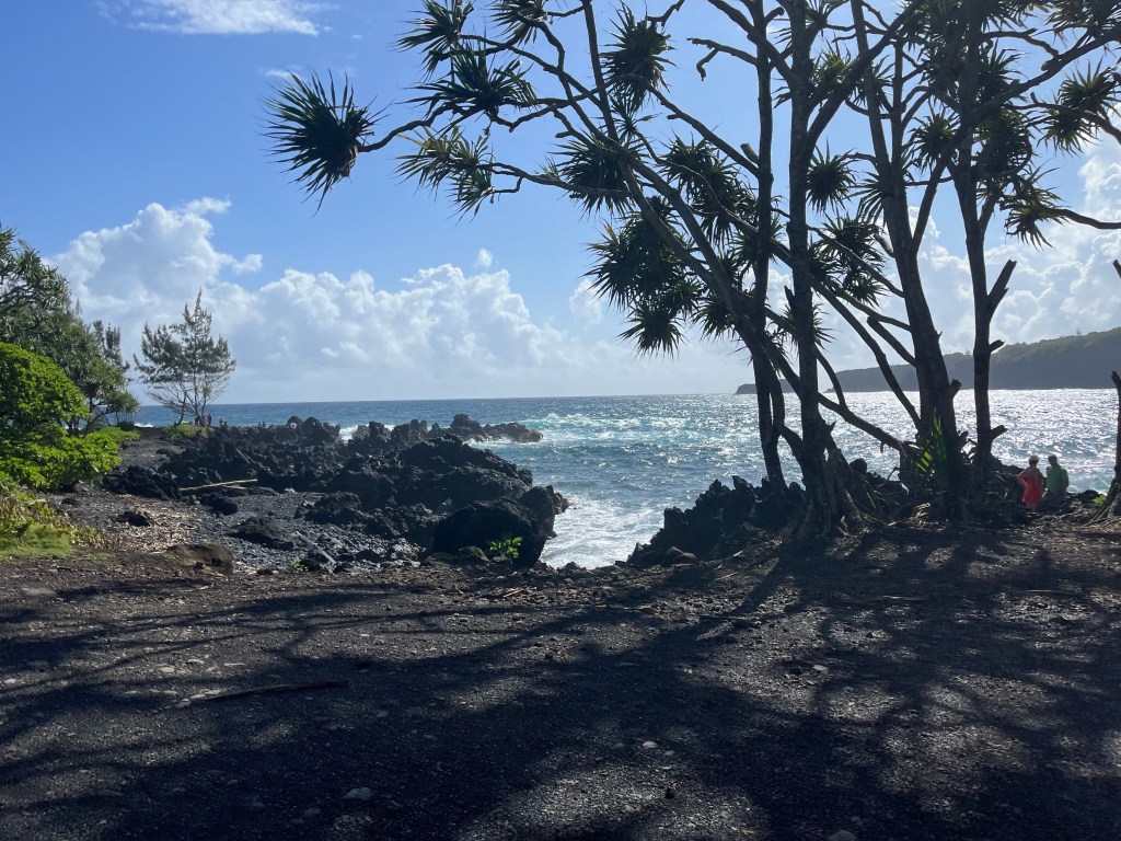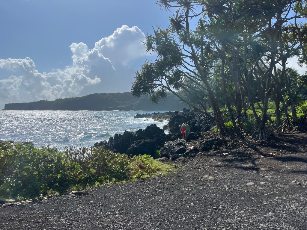 A few things about this trek – bring your bathing suit. There were loads of chances to swim in cool places! Make a reservation the day before for Waianapanapa State Park and the Black Sand Beach. And reserve a spot for wine tasting at Maui Wine.