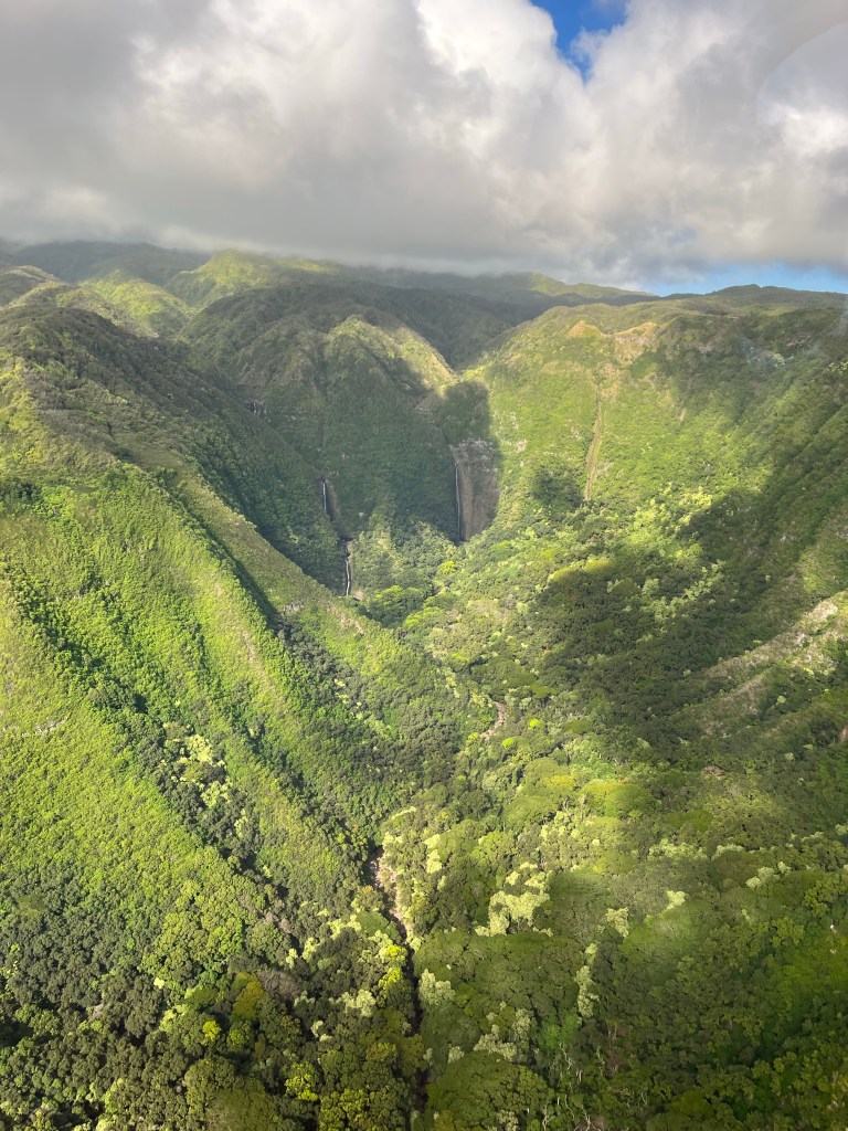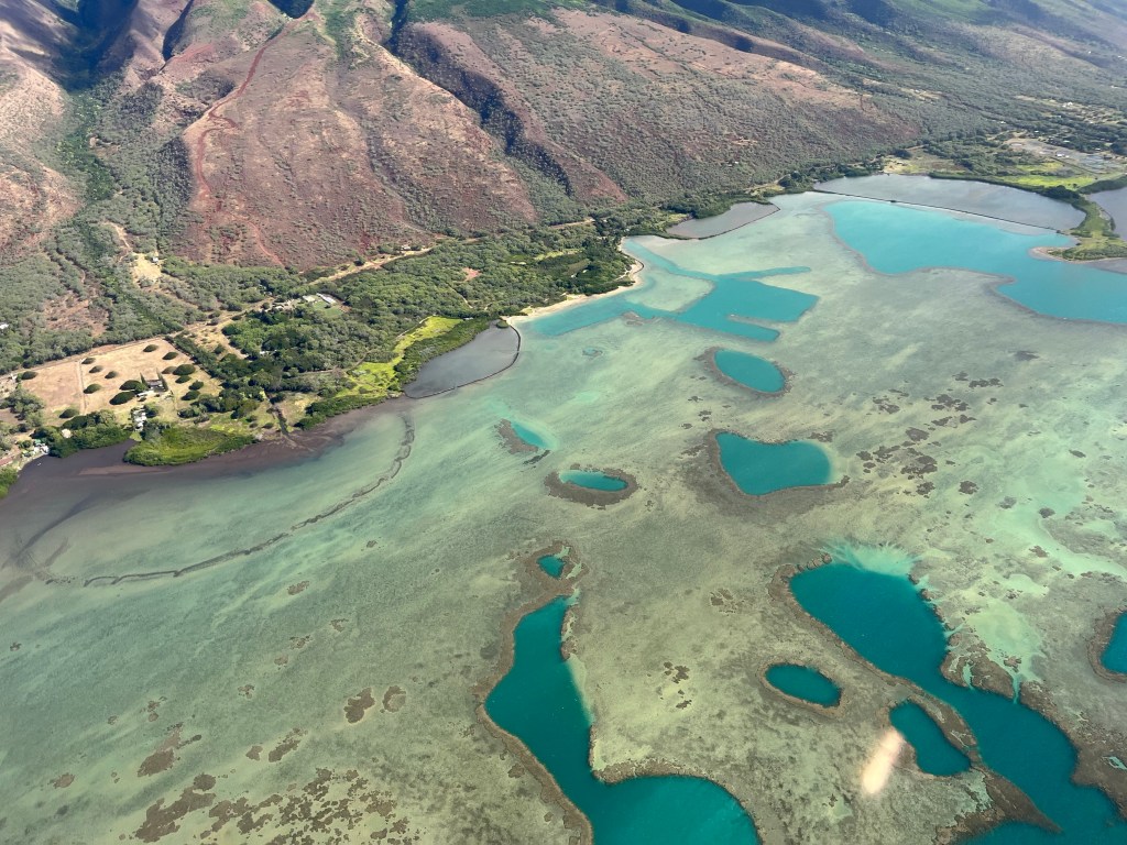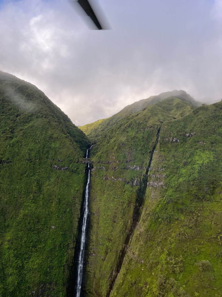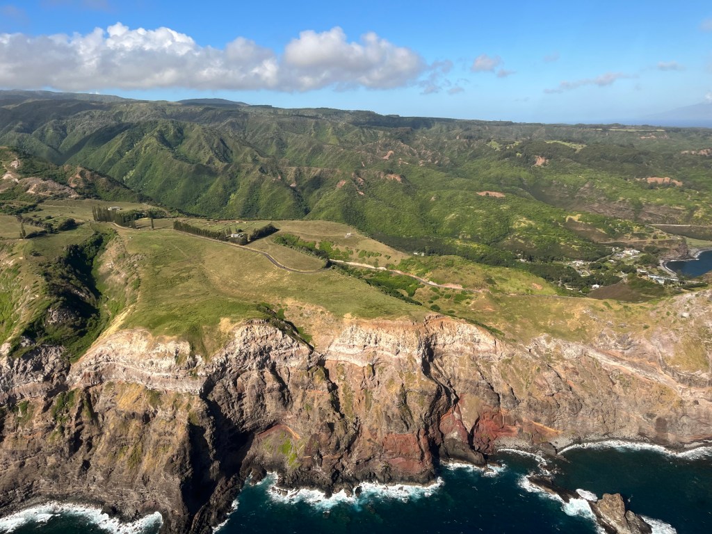 We started to fly to Moloka’i after the whale watching. Moloka’i used to be a Leprosy Colony starting in 1865. In 1905 it was recorded that over 5,800 people were there. Including Father Damien from Belgium. He arrived in 1873 and found about 800 people living in squalor. He began building them homes and creating a colony for them. But after only 3 years he contracted it too. He lived on the island for almost 17 years and died there.