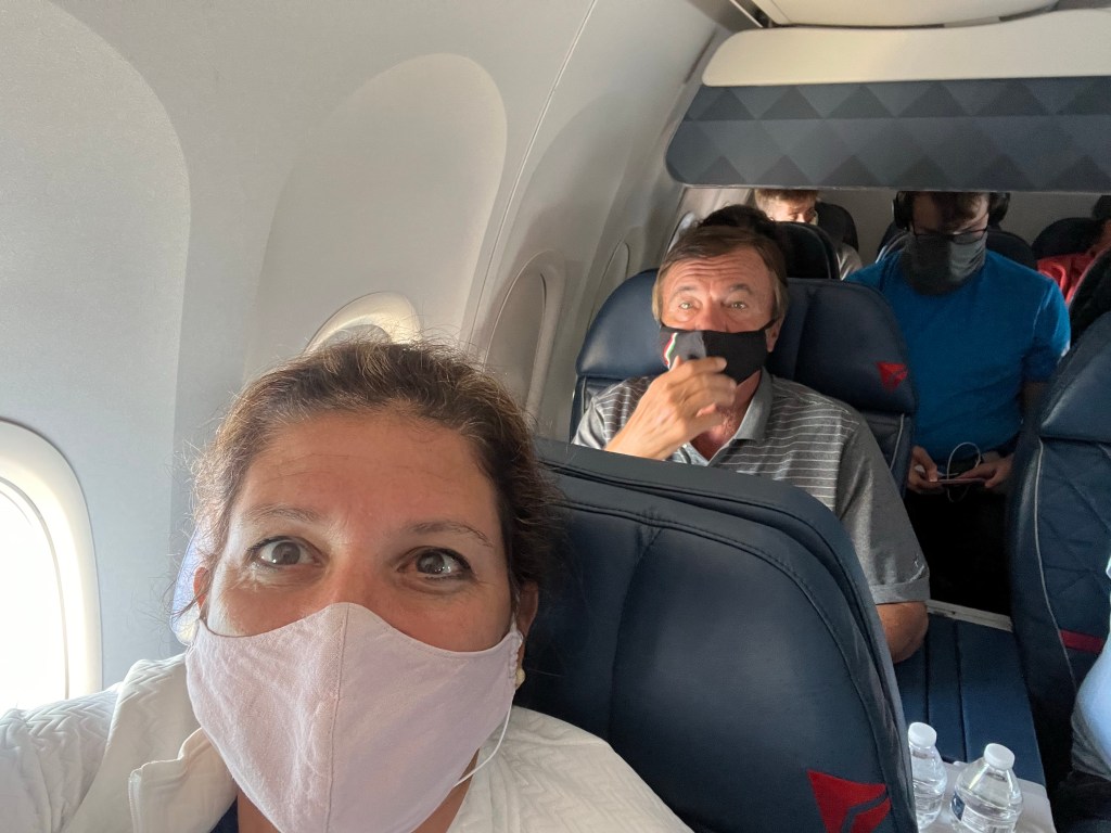 These people are crazy – still wearing masks!Hilarious signs to remind us how stupid we were!Not much inside the airport but I found this little piece of interesting artifact!And this is what Nick found…. The Bar!I think this is wrong. Good bye for now!We could not get one person to switch so we had to sit apart. Hello LA!We got stuck in this bus because some idiot missed her stop so the driver did the loop again. Heading to the desert to golf, watch tennis and see friends!