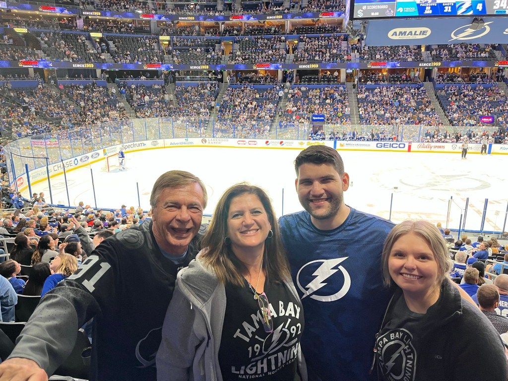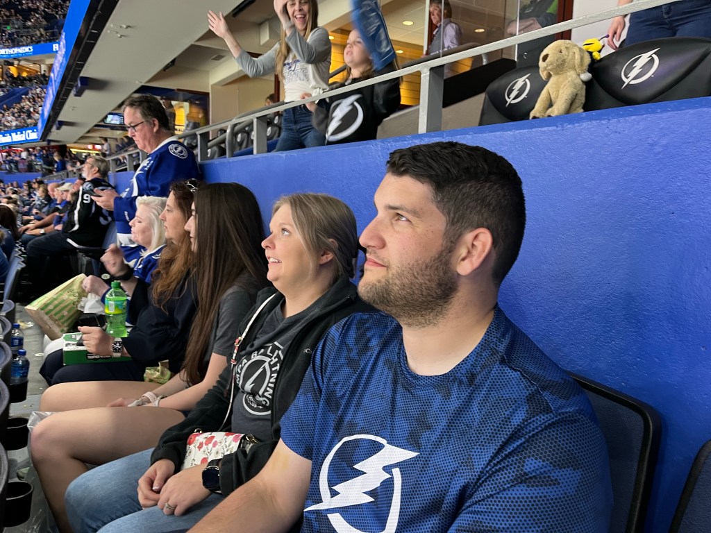 It was the last home game of the season and the Bolts are in the playoffs. Jack and Kelly arrive today and we will be heading to the game tonight together! It will be very exciting as it is Kelly’s first Bolts game and I’ve got them some new gear to get fired up about the game!!!