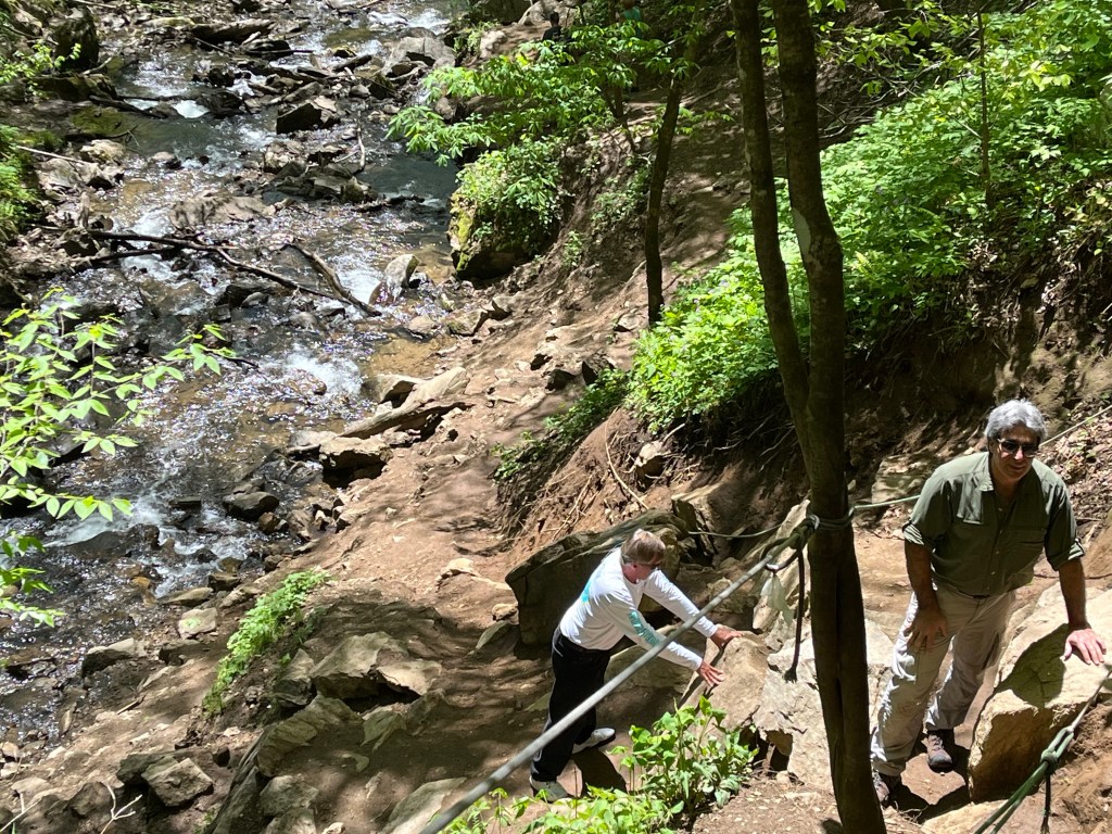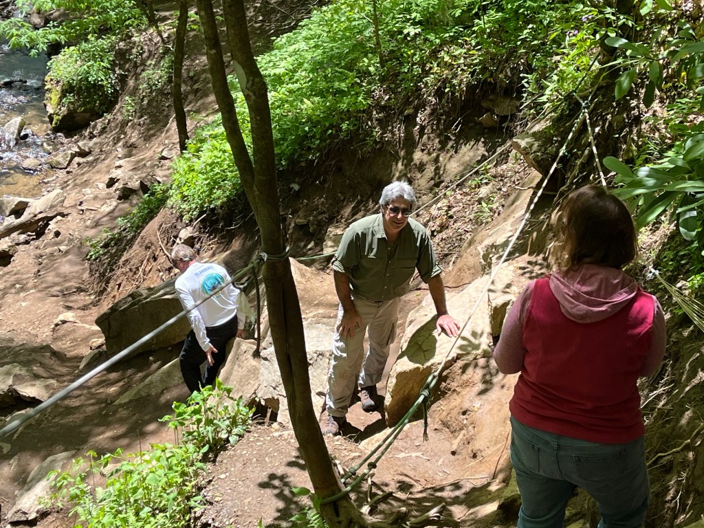 The morning started early with an overcast sky. So we are hoping for a better sunrise tomorrow. After some coffee and a little breakfast we headed out to find the waterfalls that create beauty across this land! The one we went to was on an Indian Reservation and it was really untouched and not the easiest to get to! They had rope tied around trees to help you balance. At one point some young men were climbing back up past us and they had to do quite the maneuver to get up. That was a wake up call for this old gal!