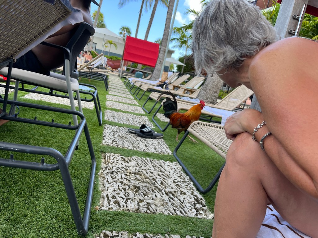Nancy just loved the roosters at the pool! We got a cabana to make the heat more bearable but it just started our day drinking early! The cabana came with a bottle of champagne and 4 free cocktails.