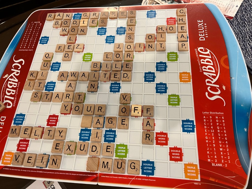 When we got back we enjoyed a quiet evening watching the PGA Tournament in Souther Hills (Oklahoma) featuring Tiger while playing a competitive game of scrabble!