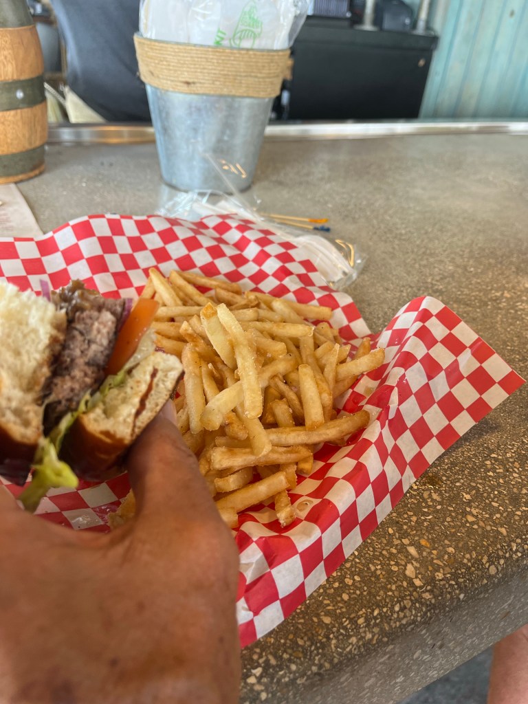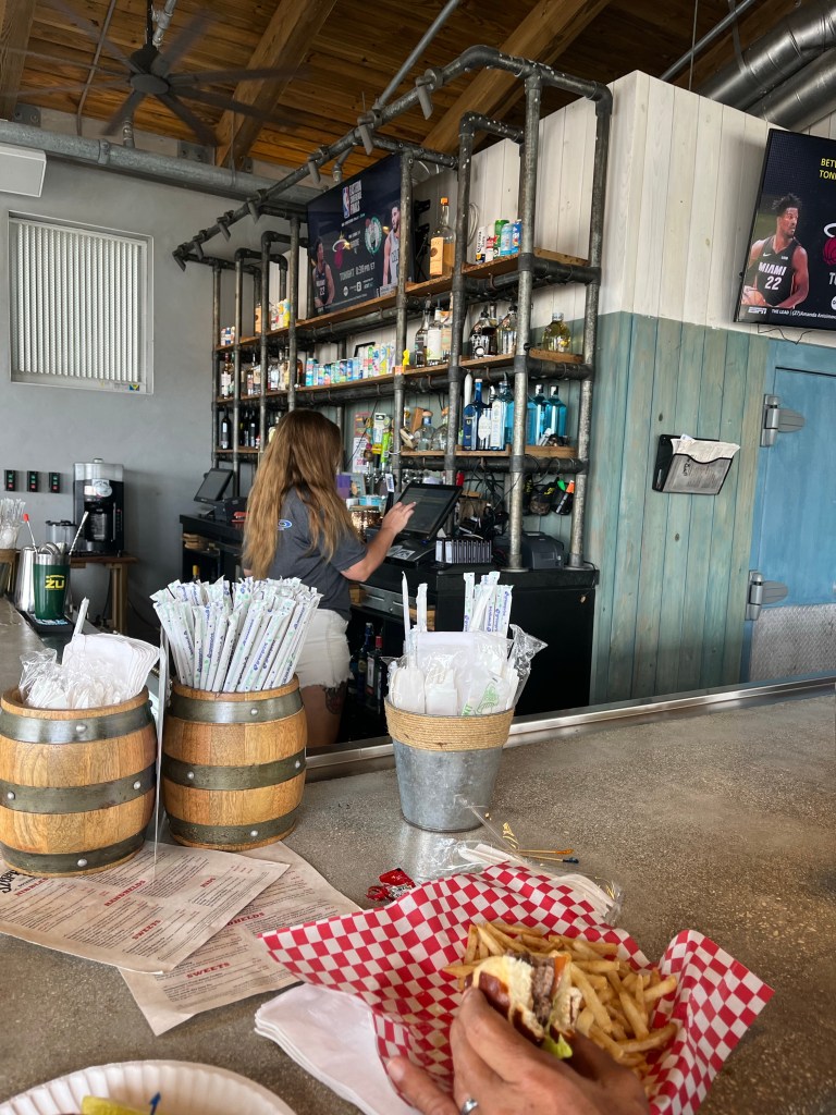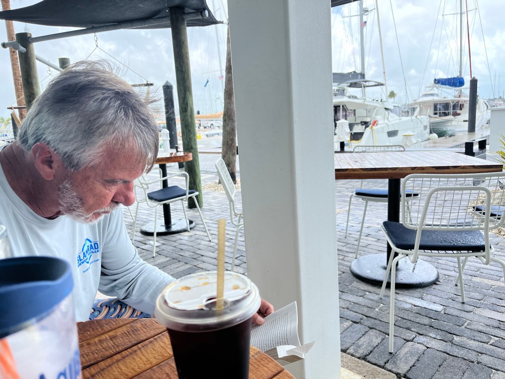 We were reading next to the pool until it started raining a bit too much. Then we walked down to the coffee shop and eventually we went over the other tiki bar to try out the Sloppy Joes Cafe.