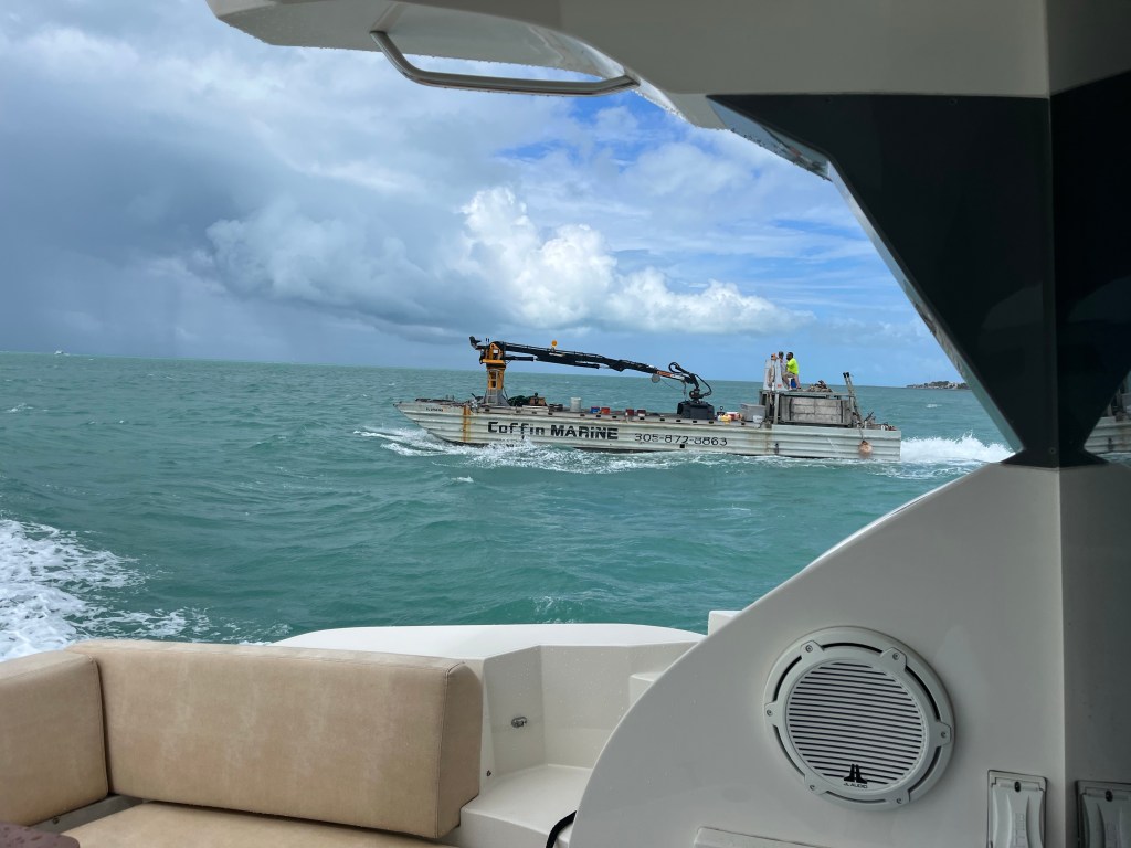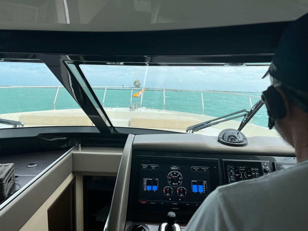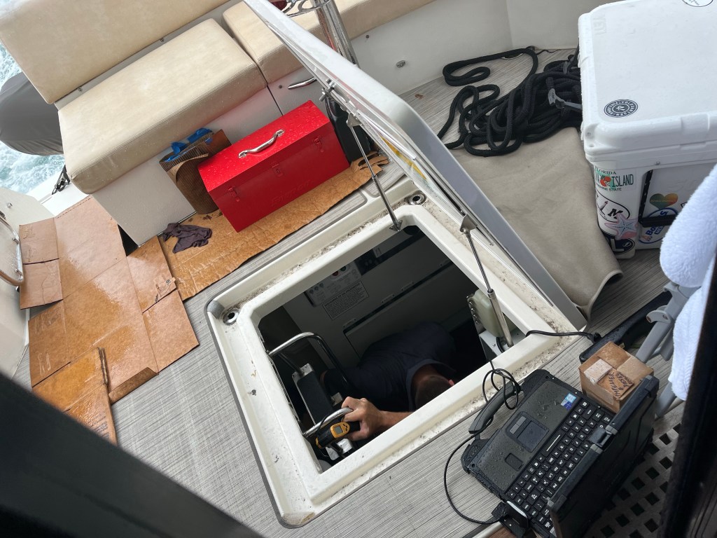 Well, today was the day for the sea trial. Not a great day for boating. But I figure the mechanics looked at the forecast. There was one guy in the engine room and one guy half in and half out of the engine room and that guy was on his laptop. I don’t think they were expecting the 2 – 4 foot waves.