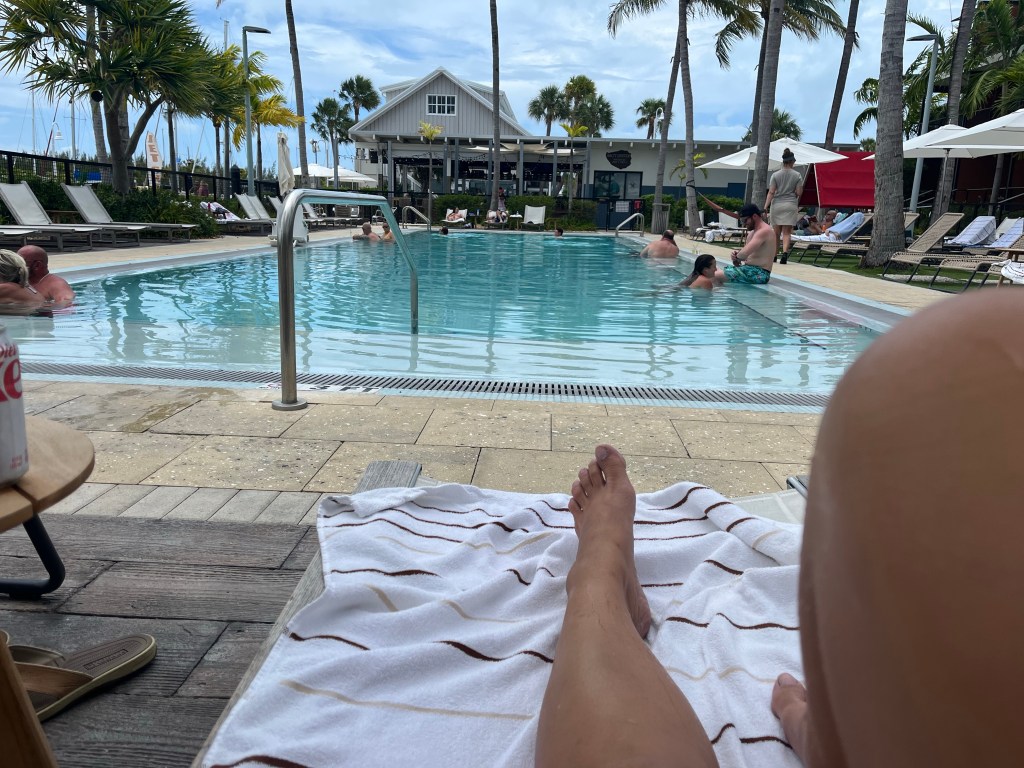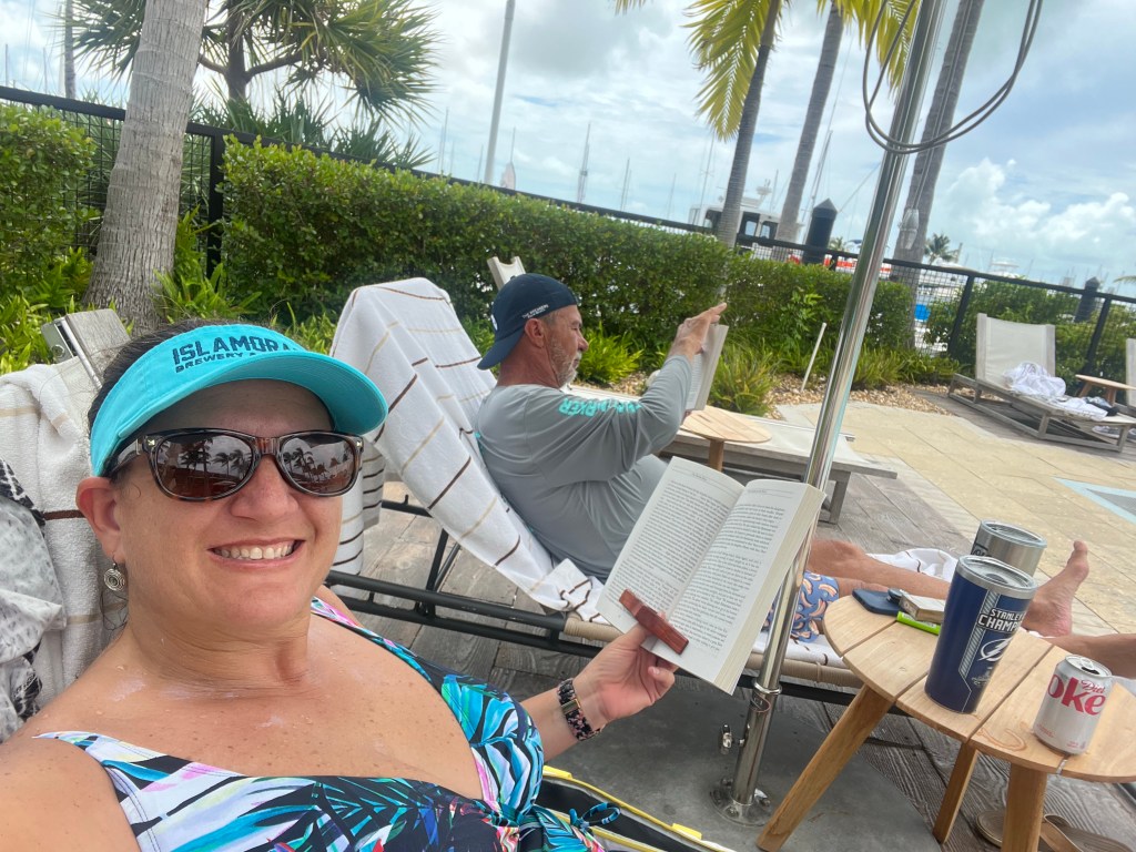 After a crazy wind, making docking the boat beyond difficult, we had to get back to the pool! Captain Nick did a superior job docking in such difficult circumstances! He deserved a cocktail and quiet time to read.