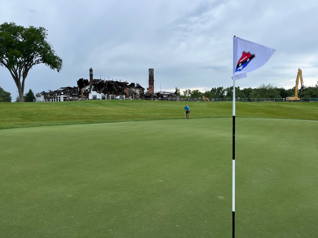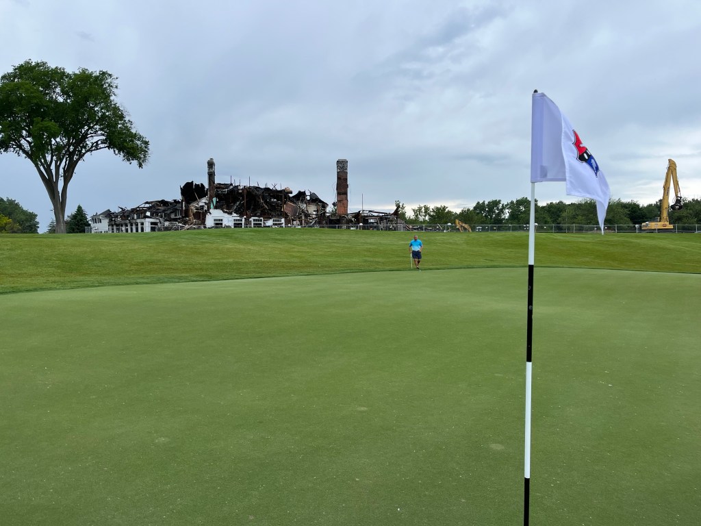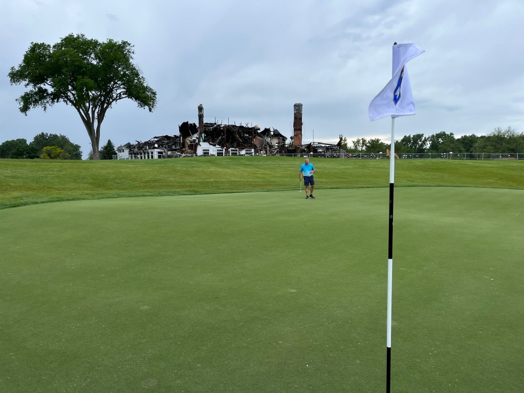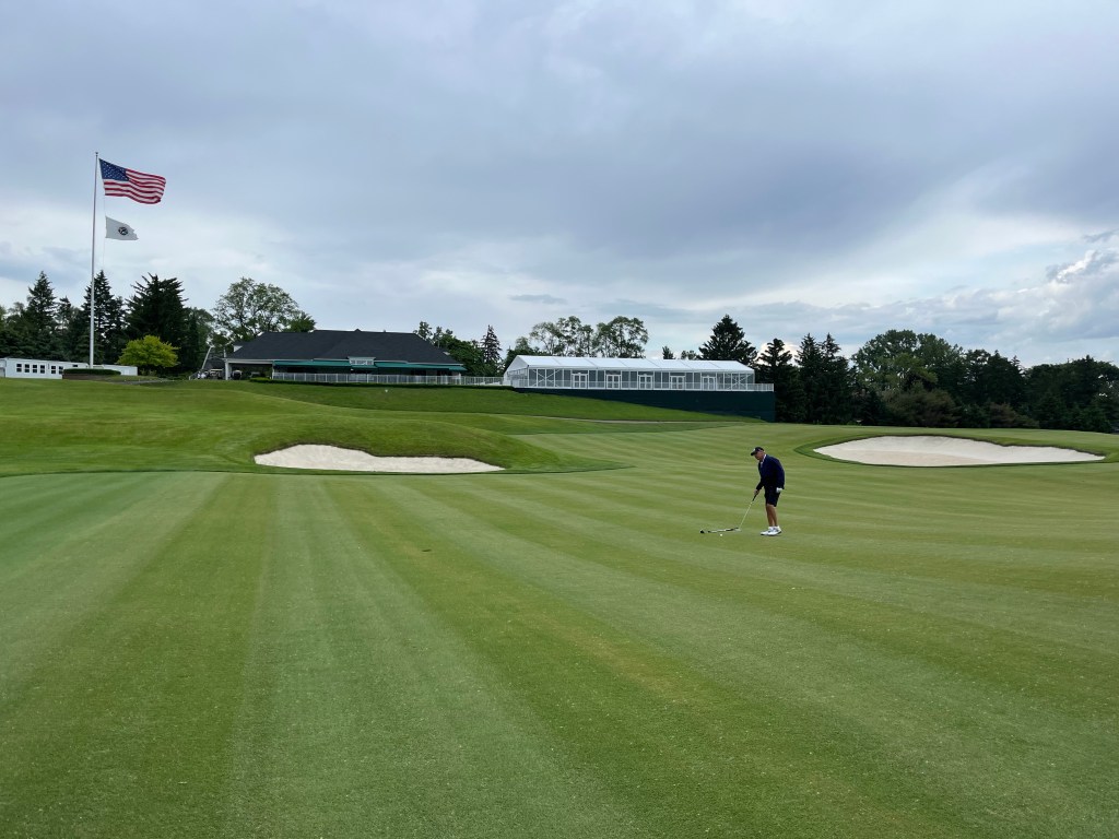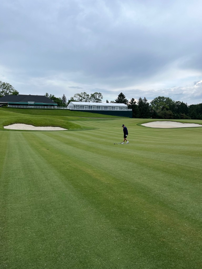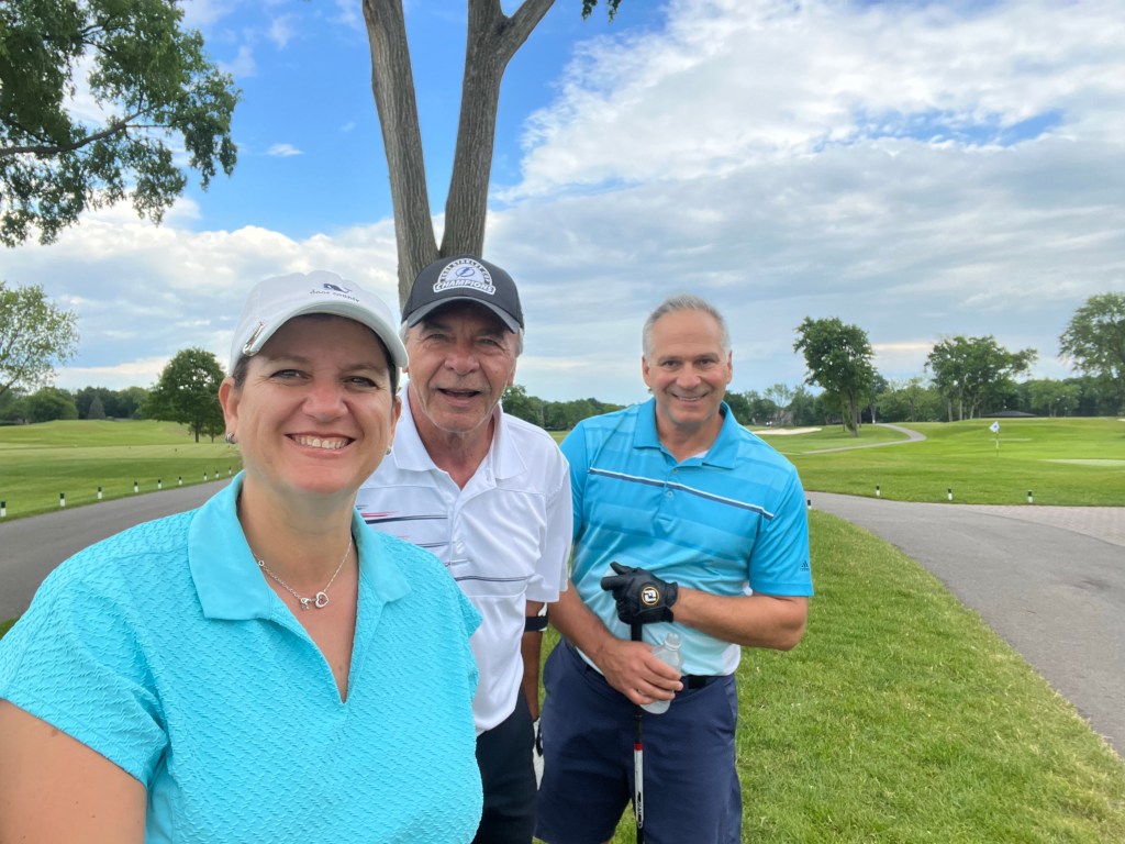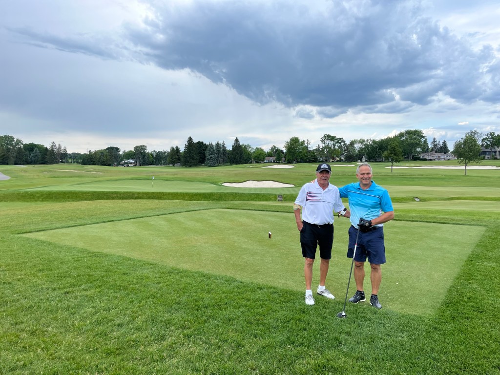 The rain started on 12 but stopped before we got to 13. It was a good day! Tonight we are having a nice dinner with Kelly & Dave and Bill & Pam at Joe Muers Restaurant in Bloomfield Hills! I had the Dover Sole and it was perfect! When I asked for a box to take my leftovers home the servers helper said – “yes, of course because there is a worldwide food shortage”. I just laughed inside. I don’t think that’s the case but whatever.