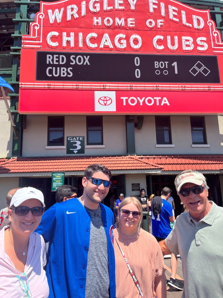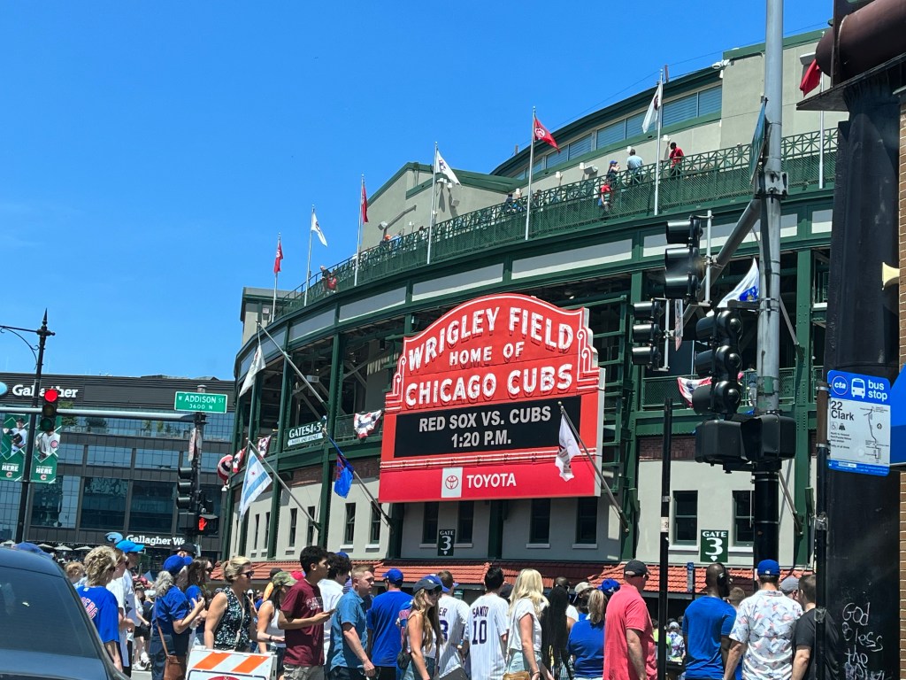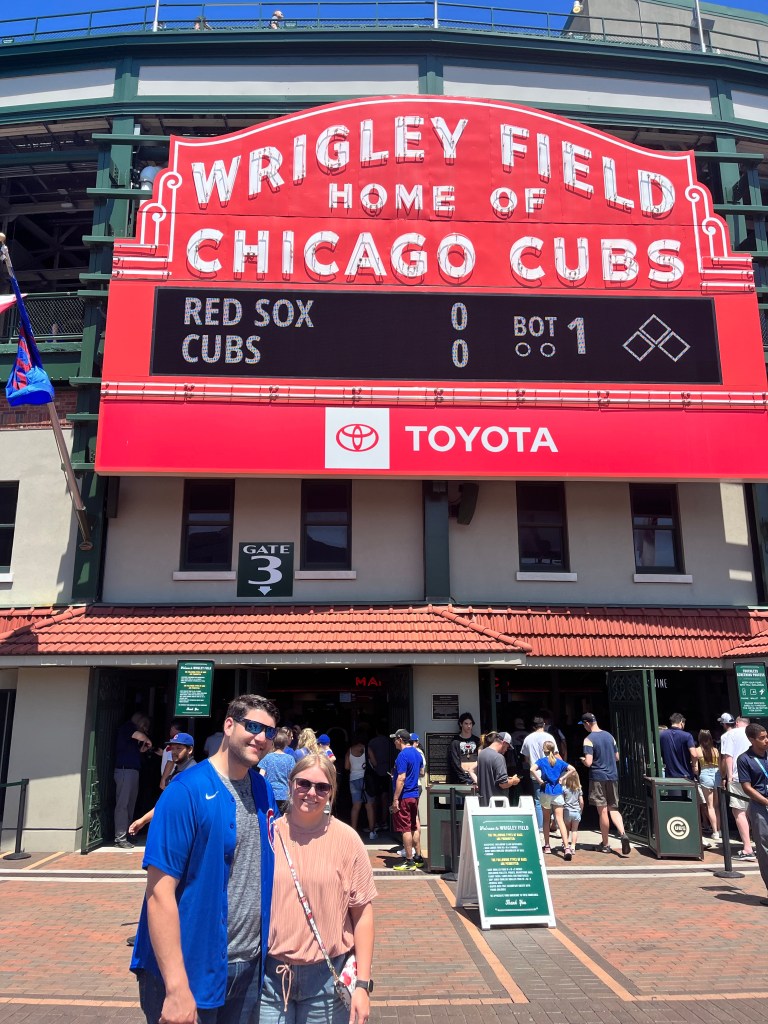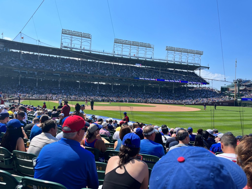 Jack and Kelly wanted to see a Cubs game. It happened to be a extremely hot day.