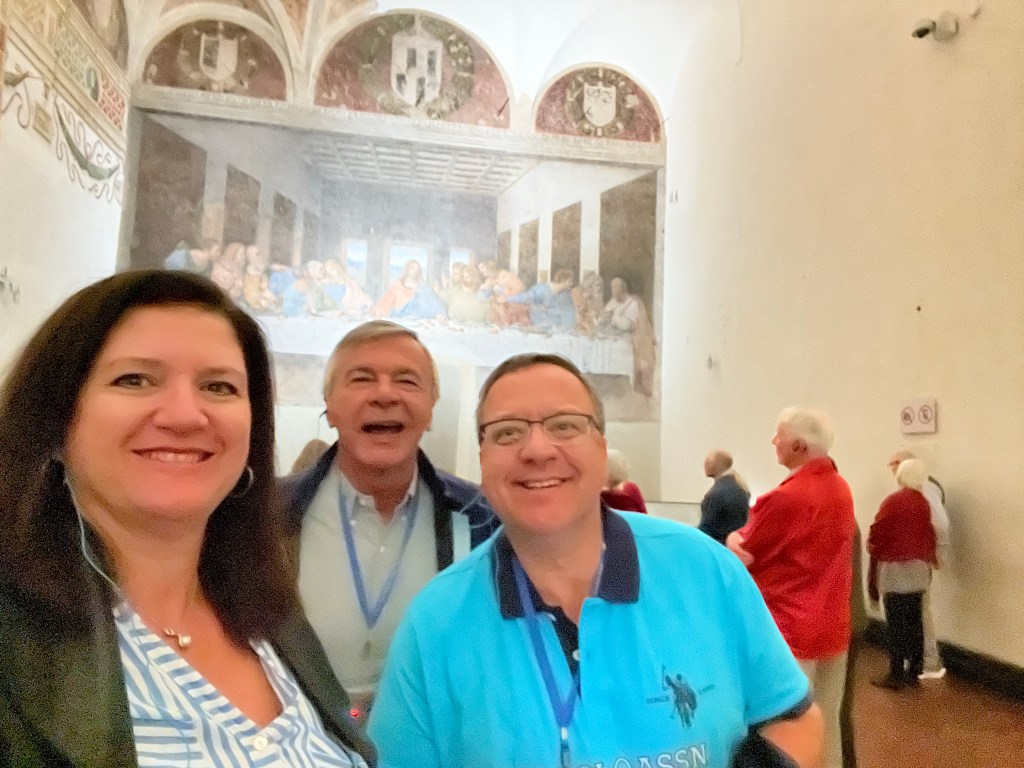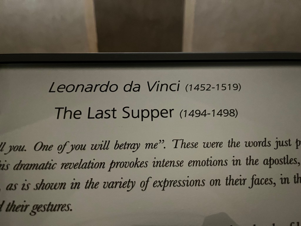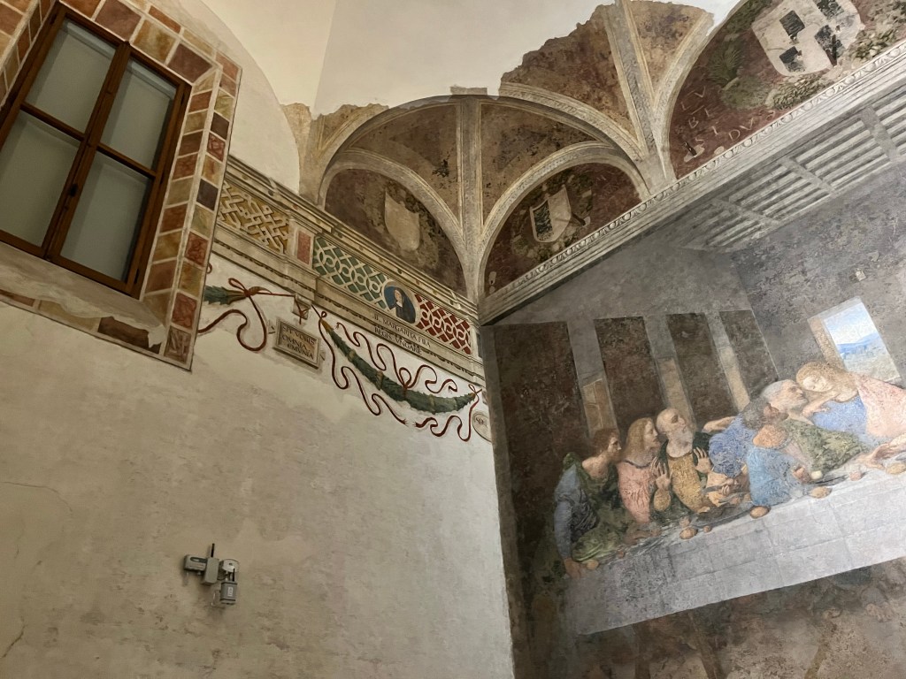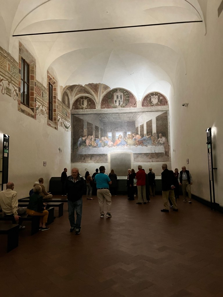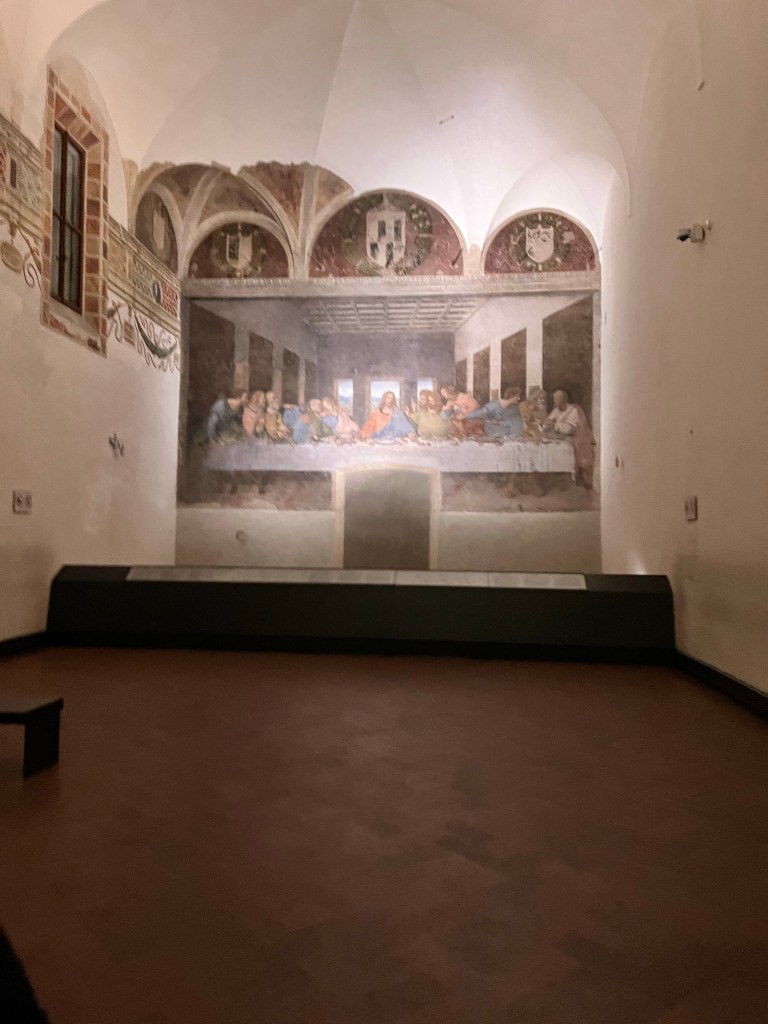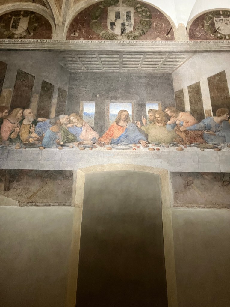 Then it was time to meet up with the tour guide. She took us to the outskirts of Milan where DaVinci painted the Last Supper. But first we went to a building where our guide purchased the tickets and there was a coffee shop. We walked through that area to fine the home that DaVinci lived in while he painted the Last Supper.