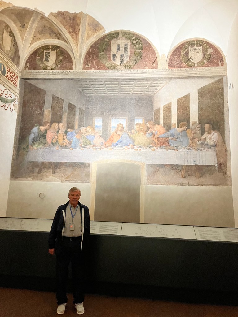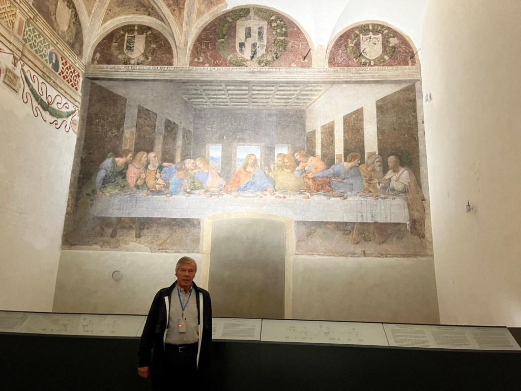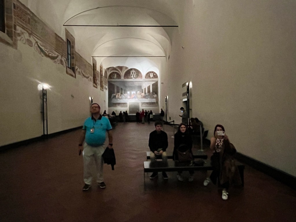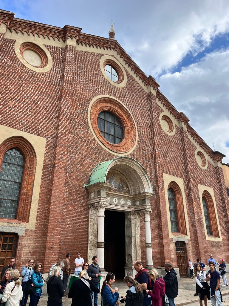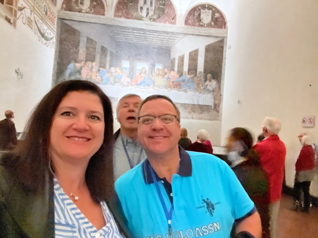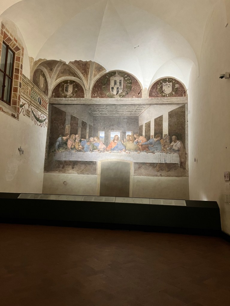 Then it was time to meet up with the tour guide. She took us to the outskirts of Milan where DaVinci painted the Last Supper. But first we went to a building where our guide purchased the tickets and there was a coffee shop. We walked through that area to fine the home that DaVinci lived in while he painted the Last Supper.