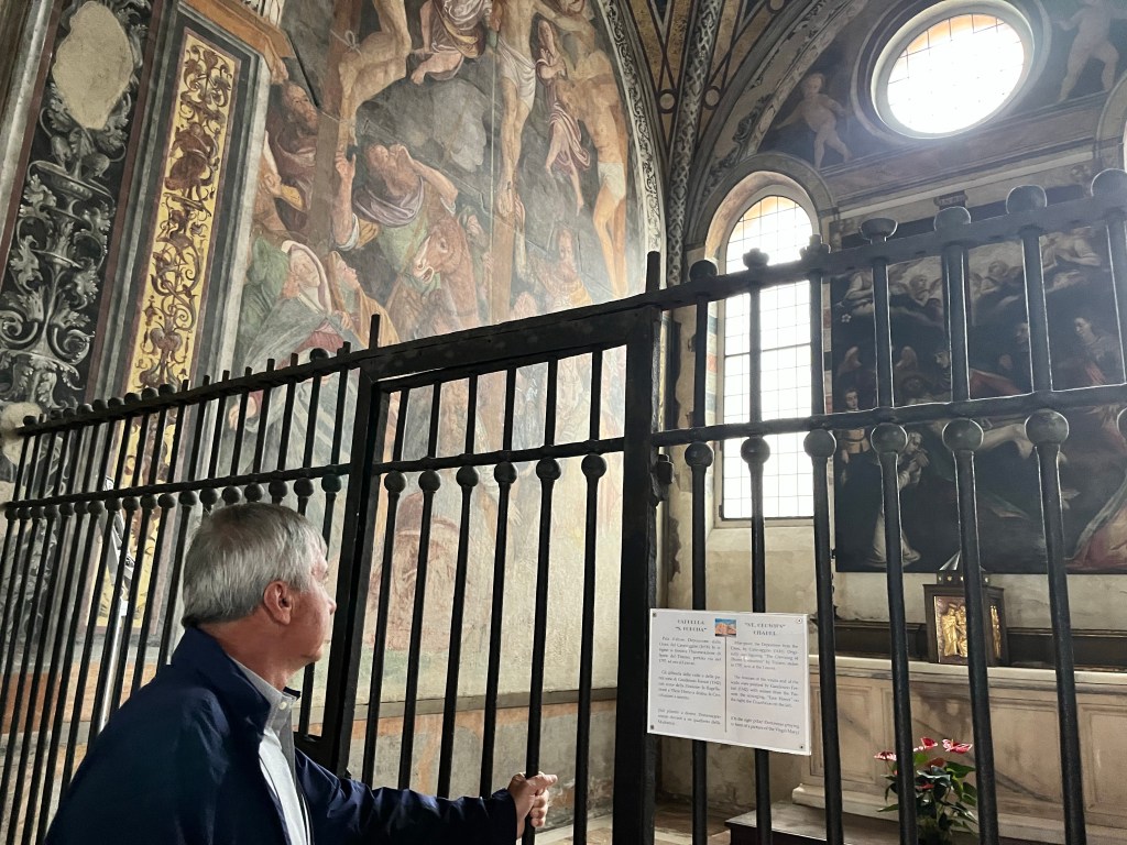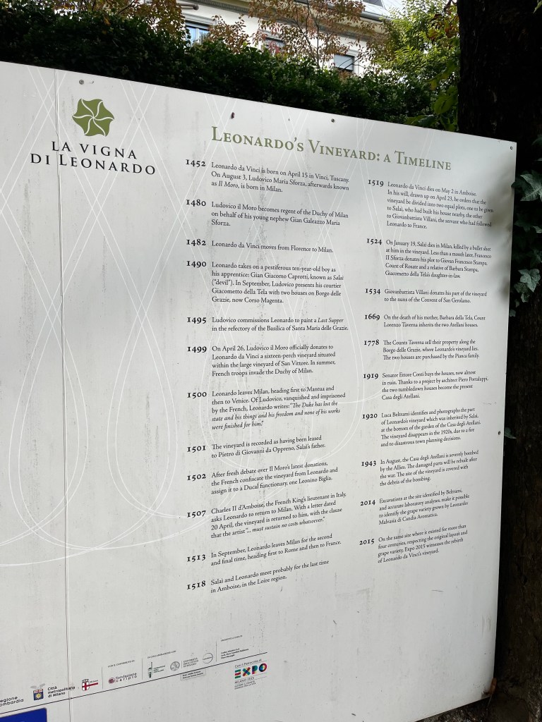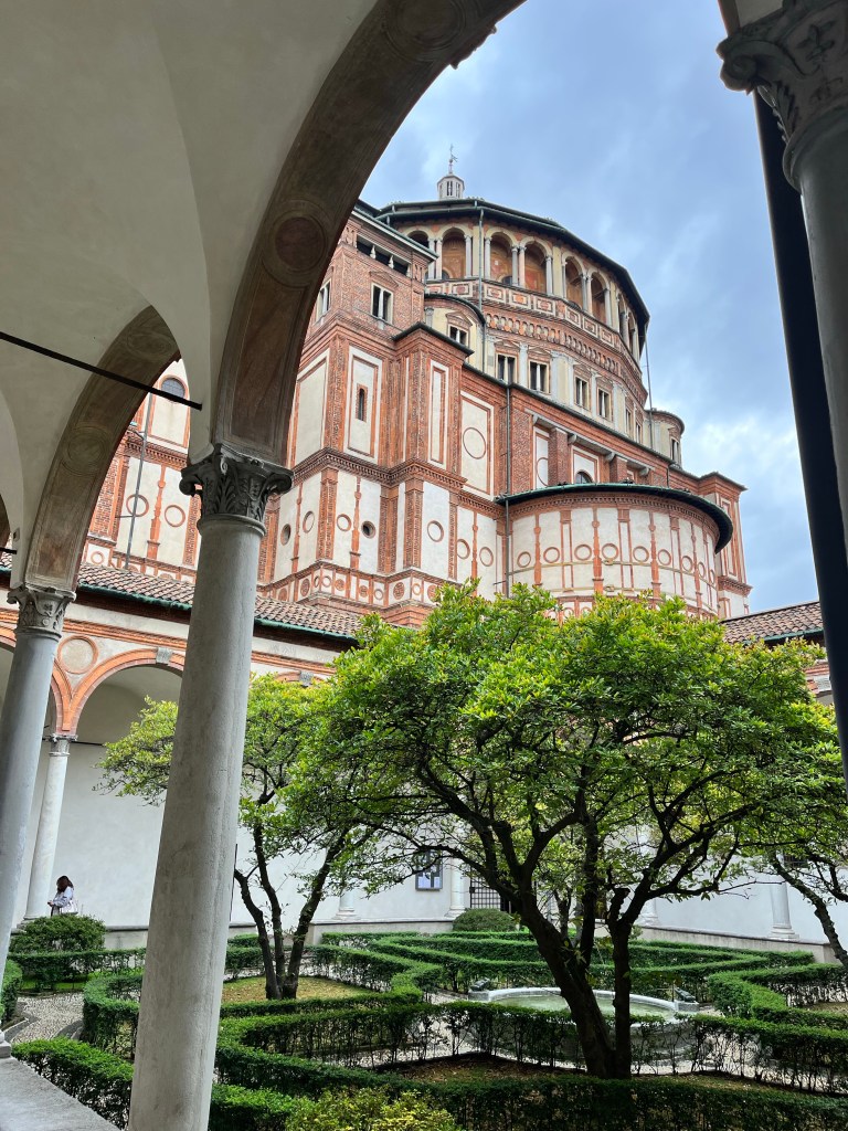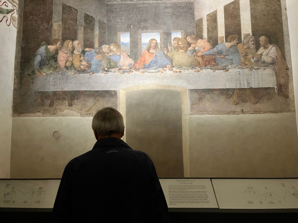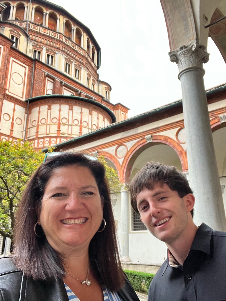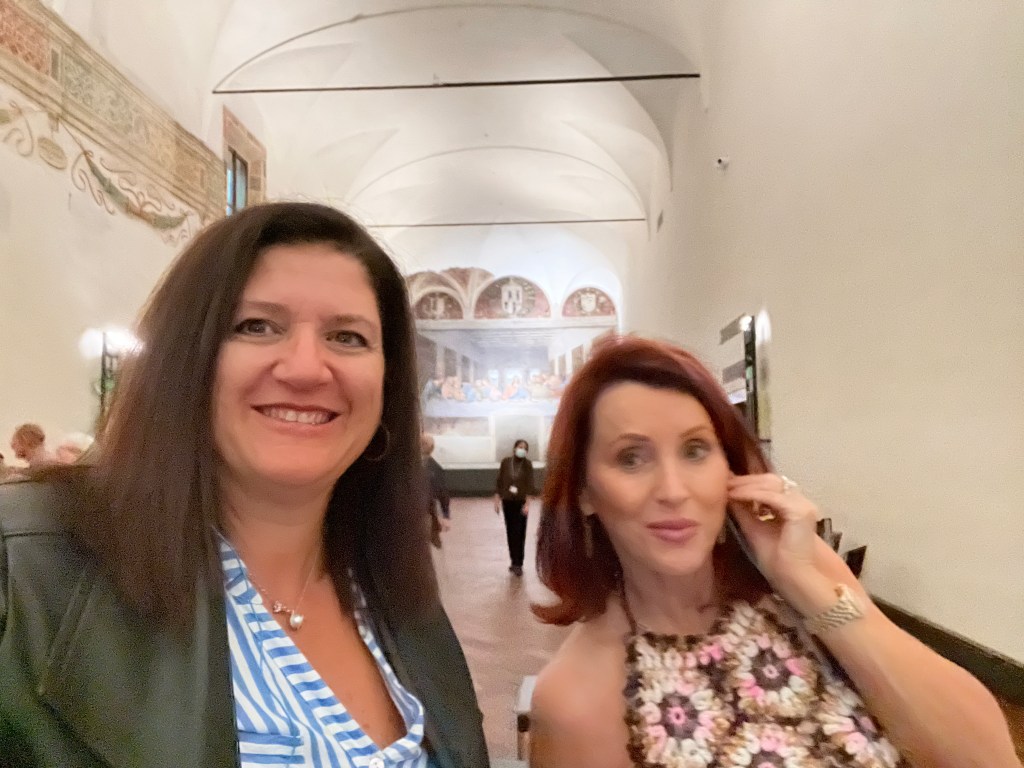Then it was time to meet up with the tour guide. She took us to the outskirts of Milan where DaVinci painted the Last Supper. But first we went to a building where our guide purchased the tickets and there was a coffee shop. We walked through that area to fine the home that DaVinci lived in while he painted the Last Supper.