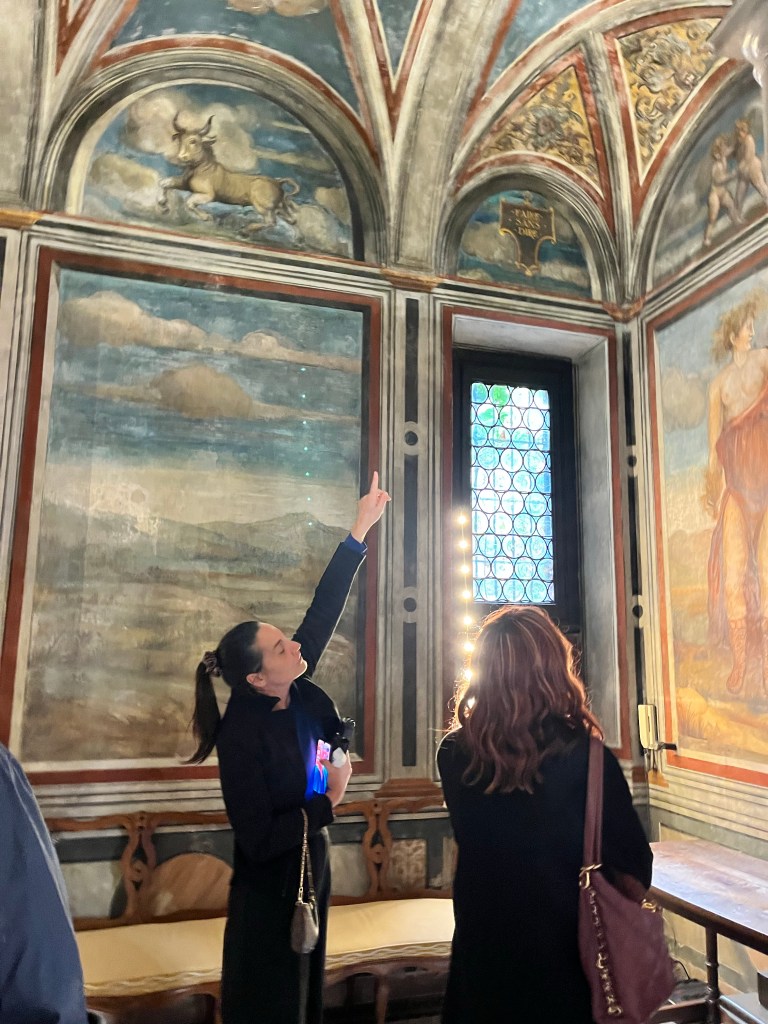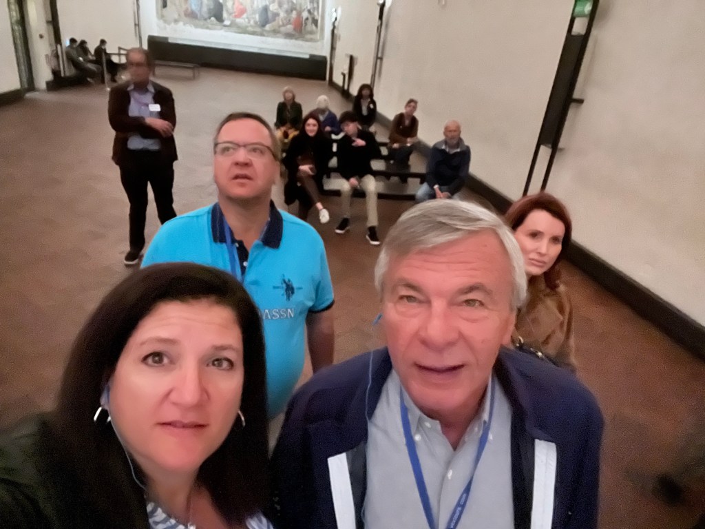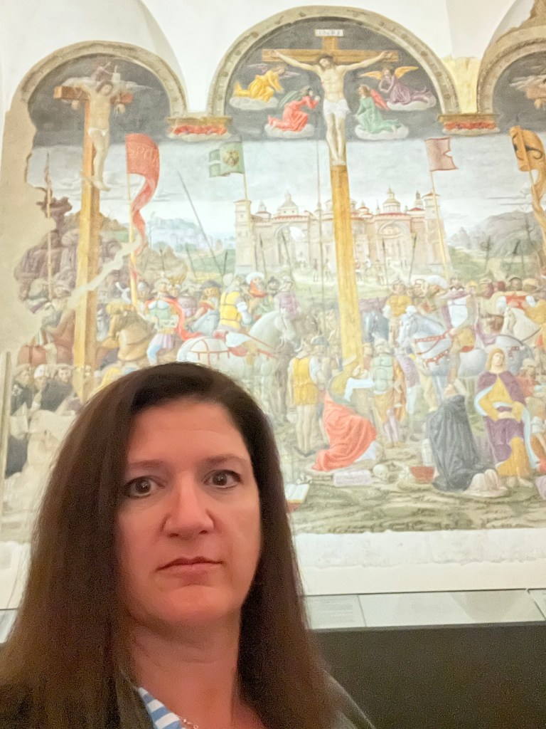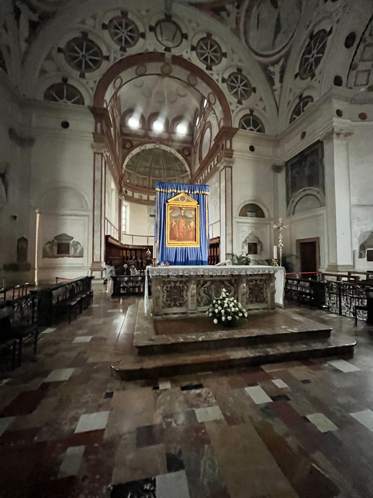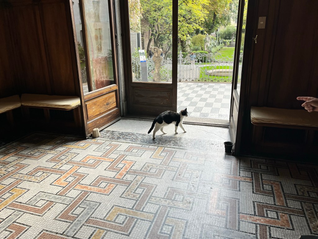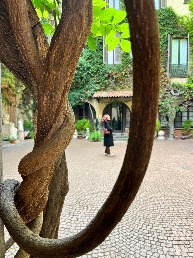Then it was time to meet up with the tour guide. She took us to the outskirts of Milan where DaVinci painted the Last Supper. But first we went to a building where our guide purchased the tickets and there was a coffee shop. We walked through that area to fine the home that DaVinci lived in while he painted the Last Supper.