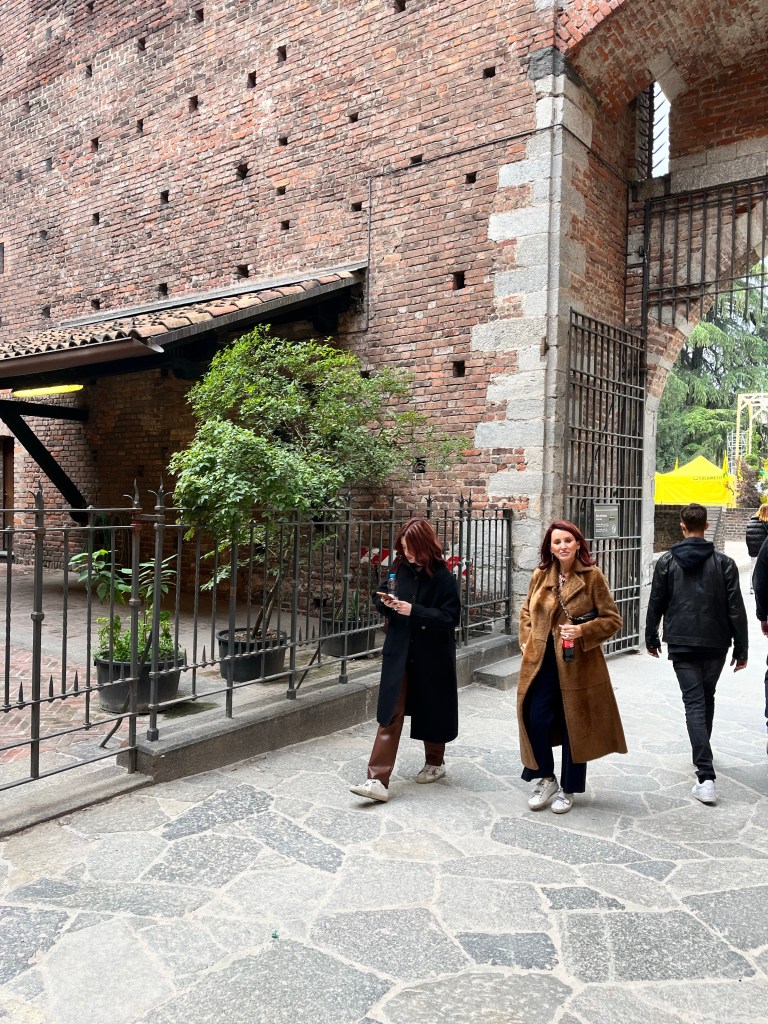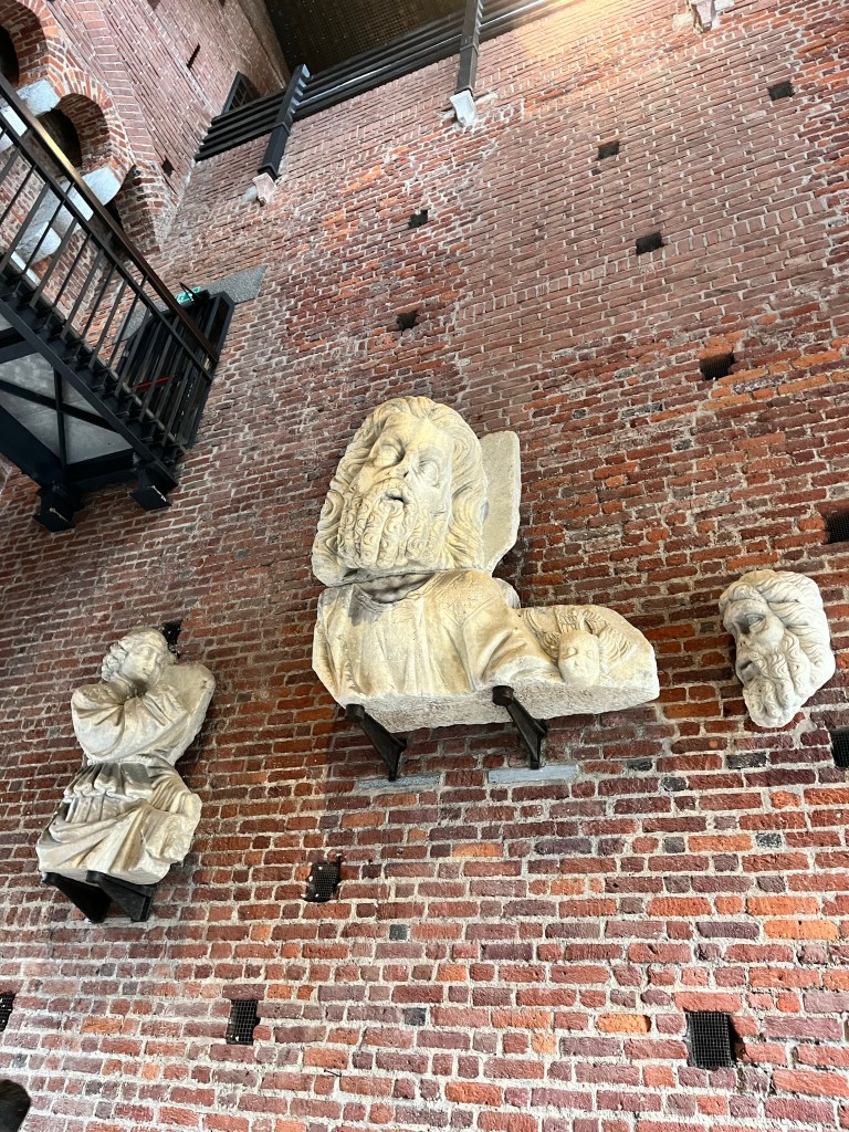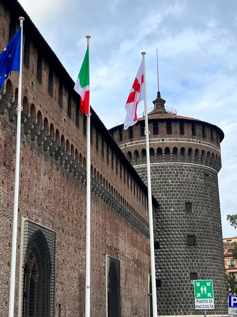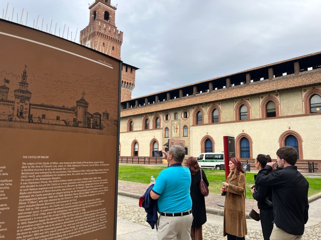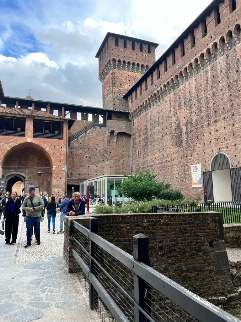 We then headed to visit the medieval castle of the Sforza family. These were very wealthy people who were the ones responsible for commissioning DaVinci for the Last Supper painting. There were about 3 or 4 museums inside this castle. It had its own lake, large grassy park and a moat.