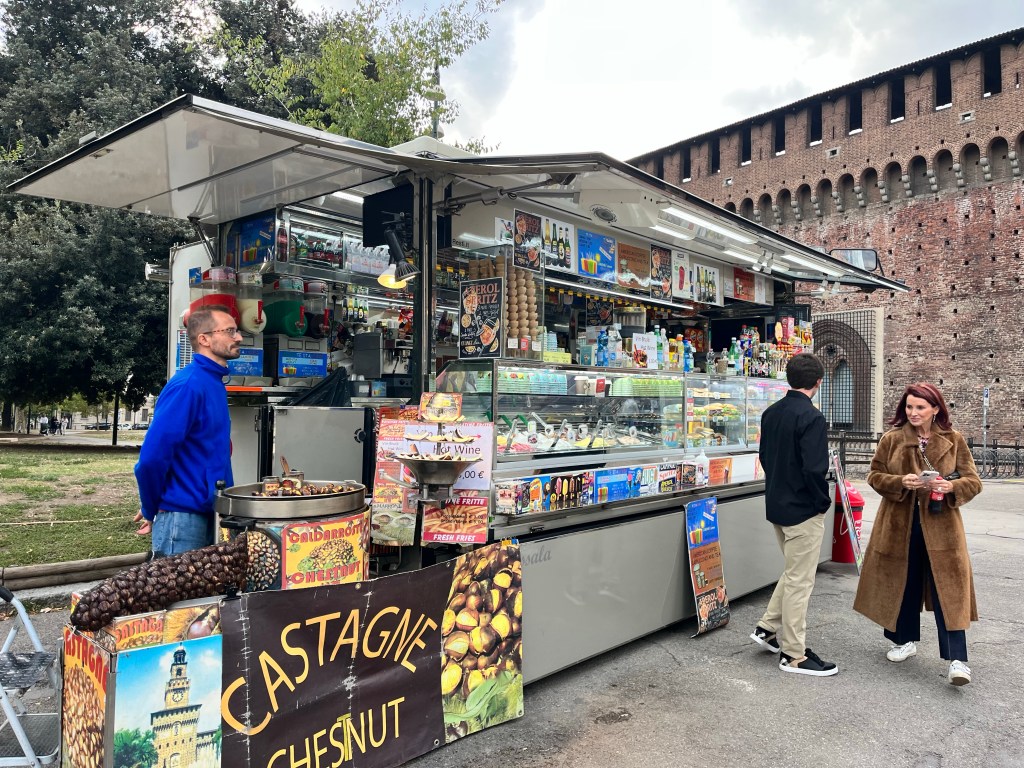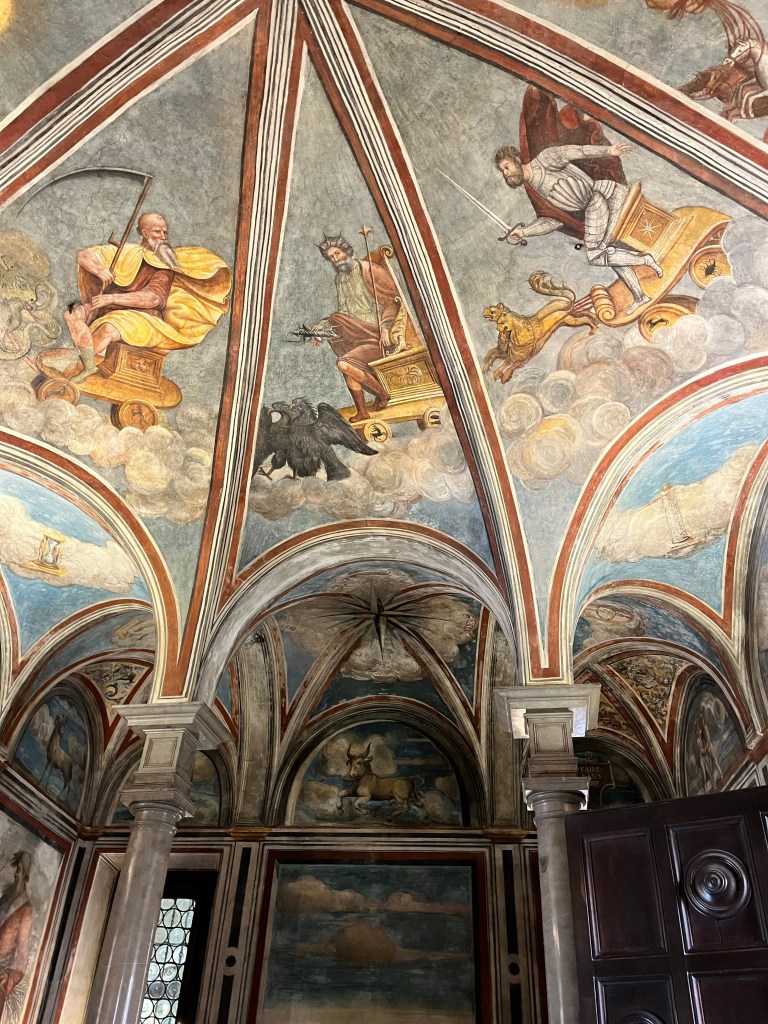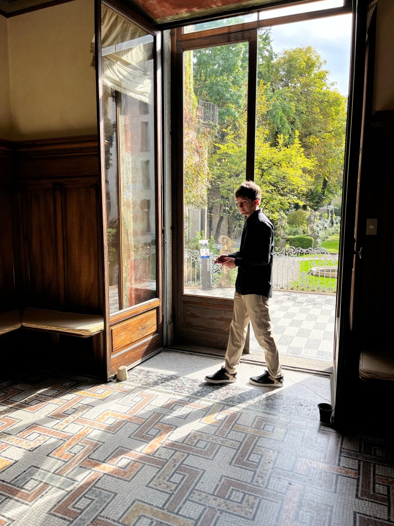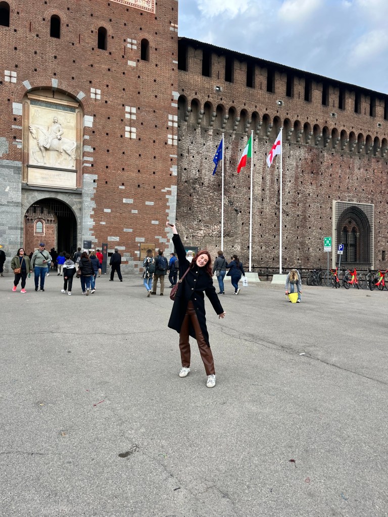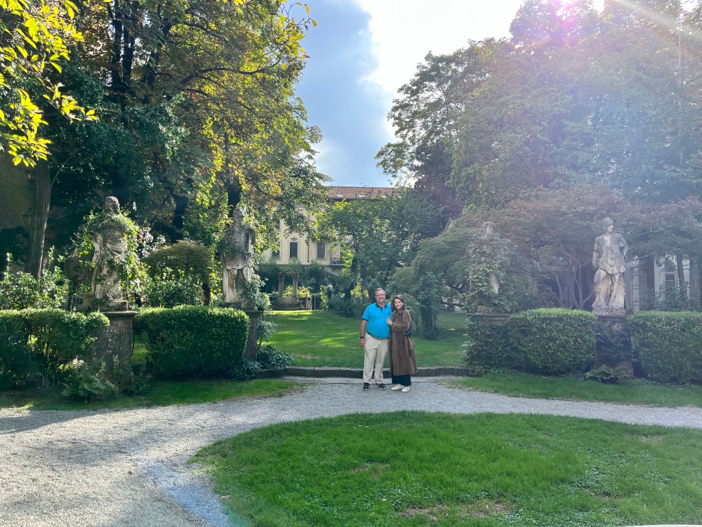 We then headed to visit the medieval castle of the Sforza family. These were very wealthy people who were the ones responsible for commissioning DaVinci for the Last Supper painting. There were about 3 or 4 museums inside this castle. It had its own lake, large grassy park and a moat.