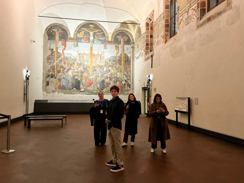 On the other side of the room is the Crucifixion painted Giovanni Donato da Montorfano.