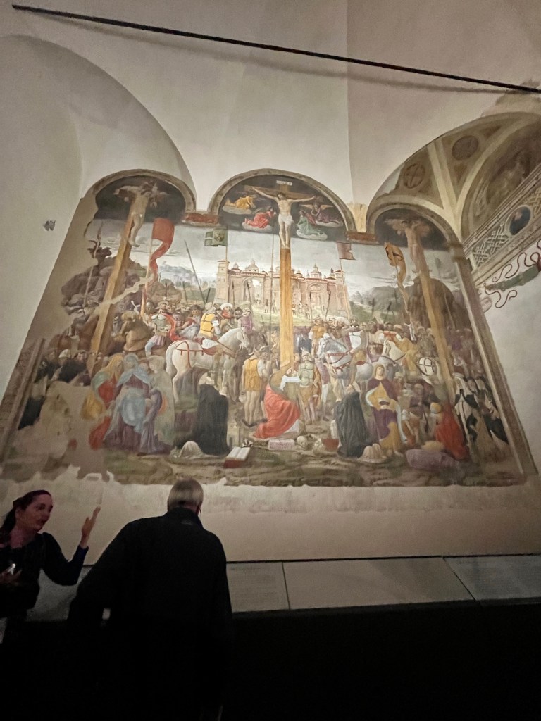 The painting is on a wall of a room that was originally used as a refectory.