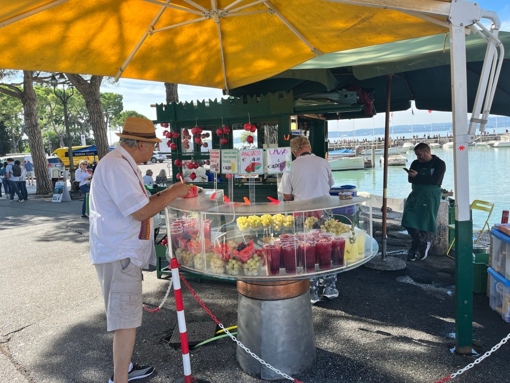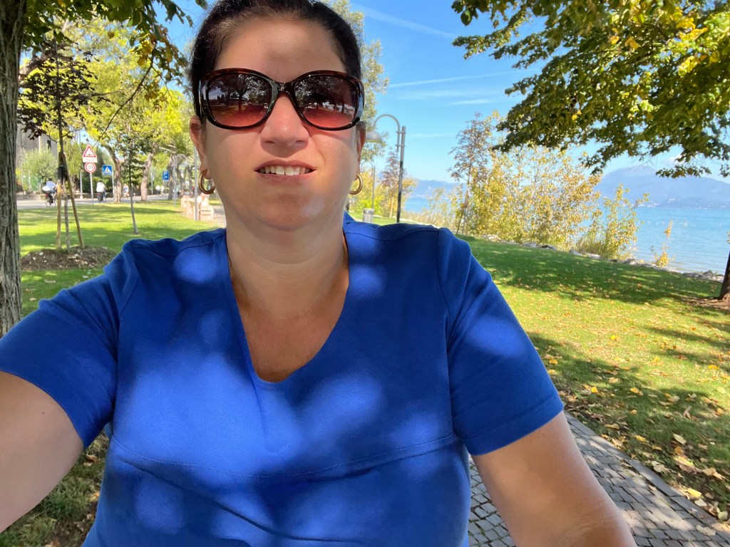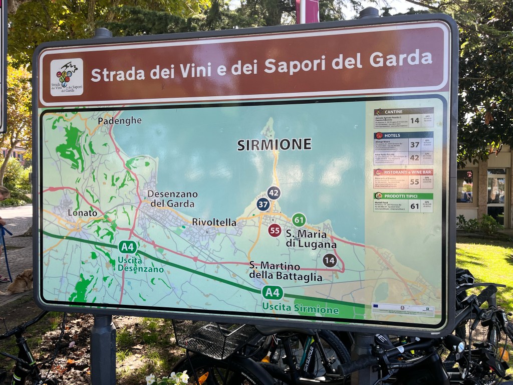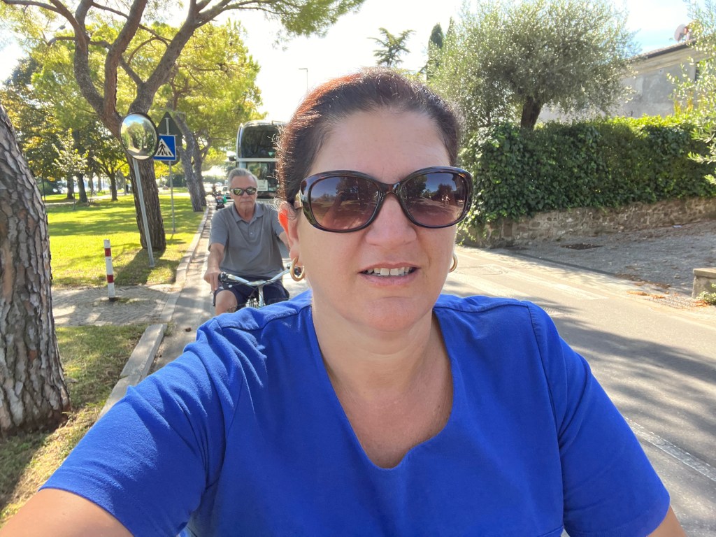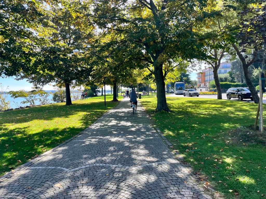 The day started with a lovely coffee and quietly reading my book while overlooking Lake Guarda. We decided we’d utilize the free bikes at the resort and ride around to discover more of the area.
