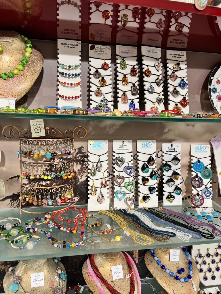 As we walked around we saw Murano glass jewelry everywhere!