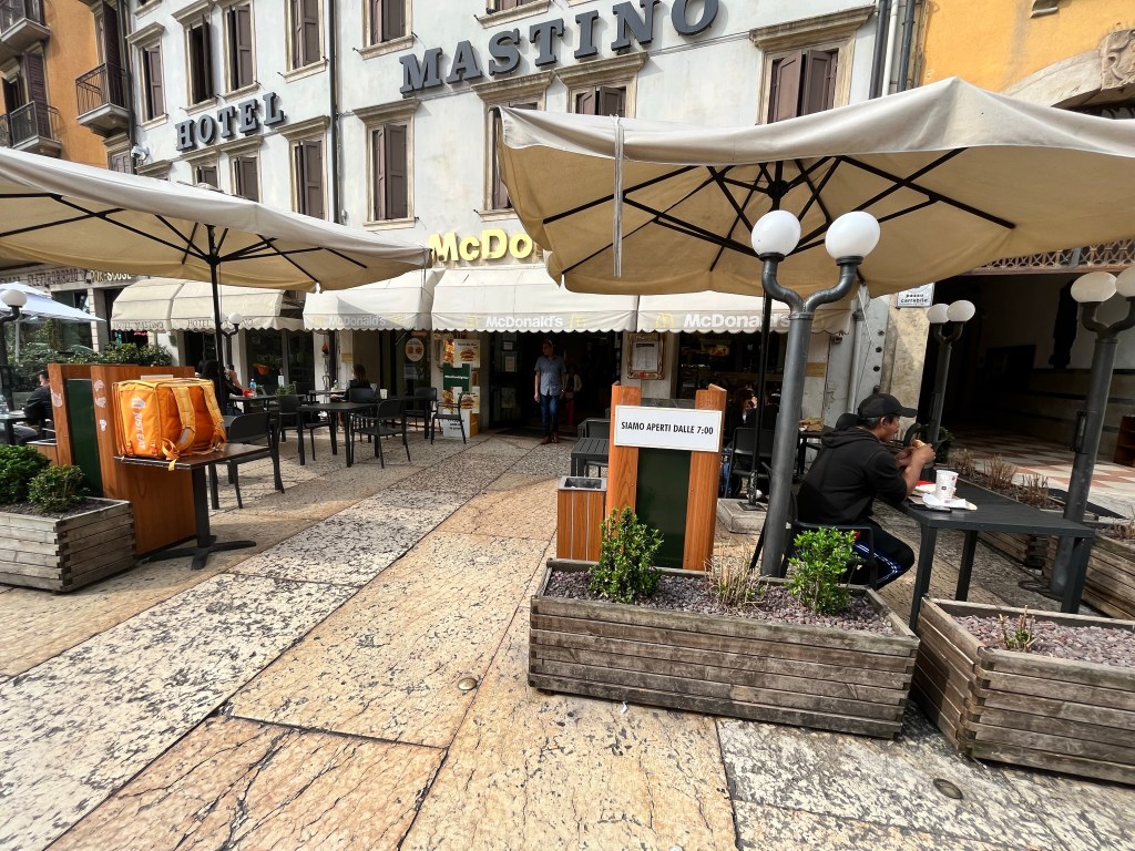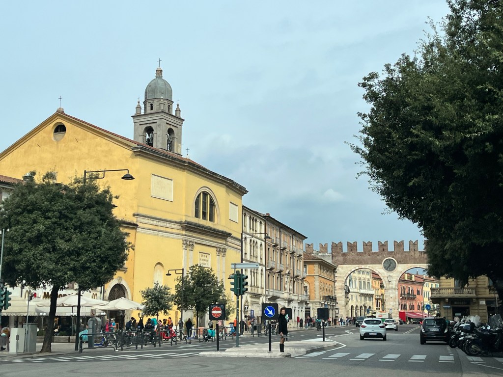 When we arrived in Verona this building greeted us. I’m not sure what building it is but it seemed oddly placed – right in traffic.