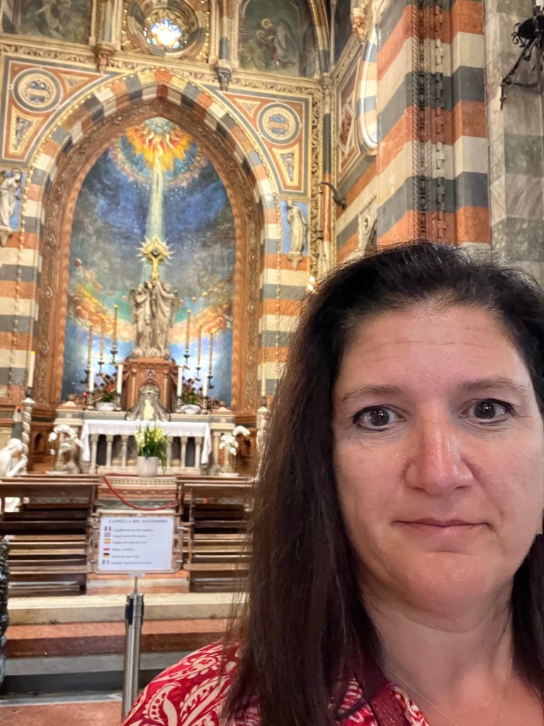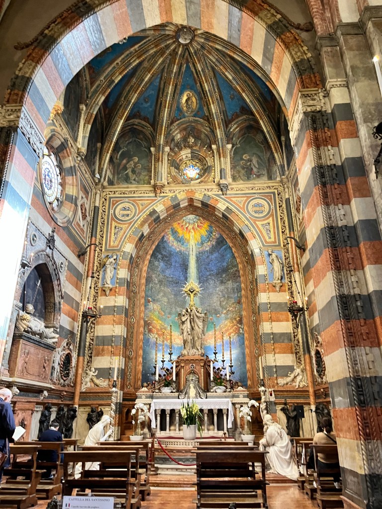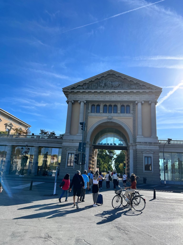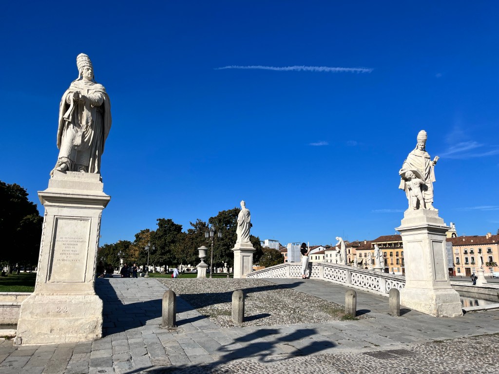 Once we found the public parking we walked over to pay and the archway led us to the only island piazza and it surrounded by white statues. It was beautiful to see! We were both in Aw for a few moments. Then we notice a spot for pizza and grabbed lunch!