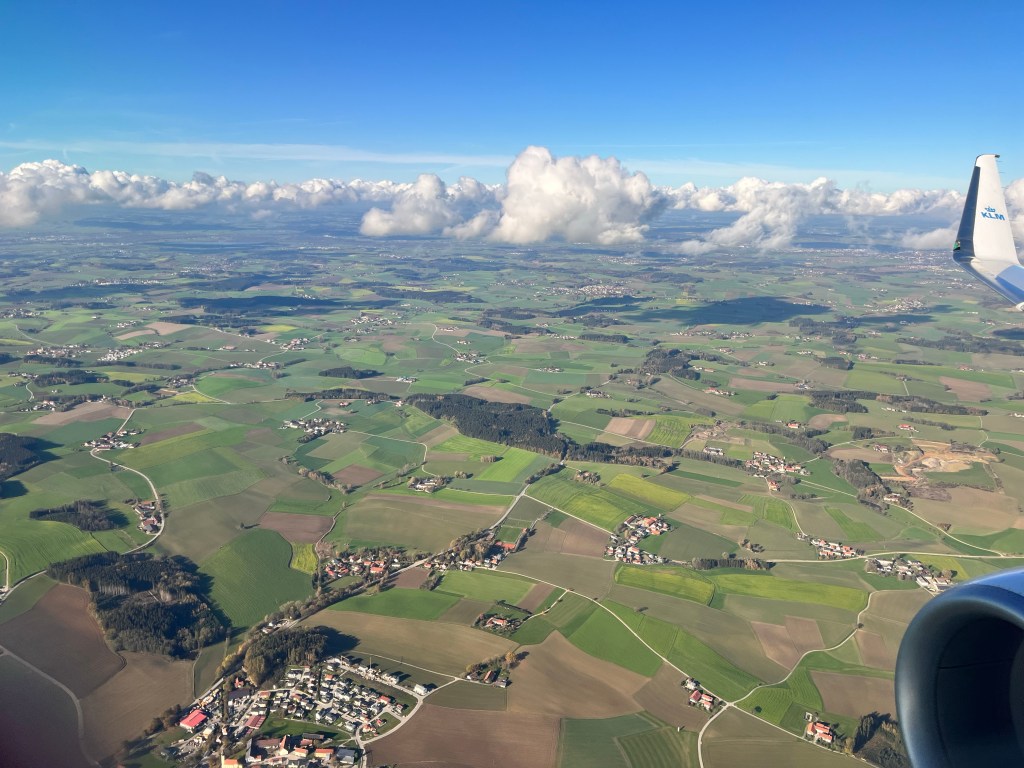 The flight started on the 9th but will end on the 10th. Always a smart way to travel when they give you mimosas!