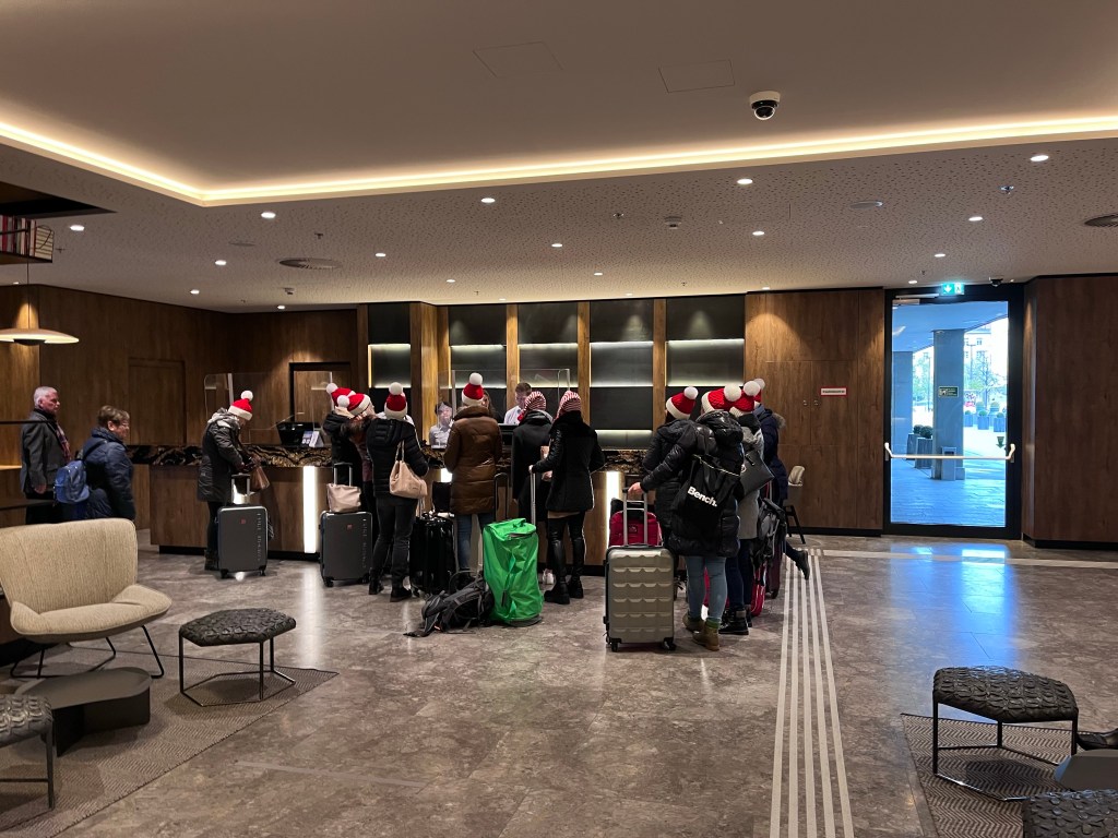 Checking out of our cute Innsbruck hotel we noticed a bunch of Santa’s checking in! We decided to stop by the Linderhof Palace on the way to our Munich Airport hotel.