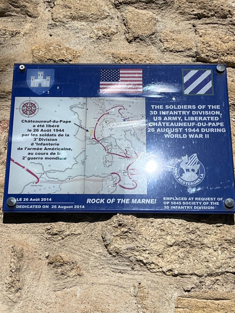 We walked around the downtown area and found out it’s a very historic town! The soldiers of the 3D infantry division of the US Army liberated this region (Chateauneuf du Pape) on August 26, 1944.