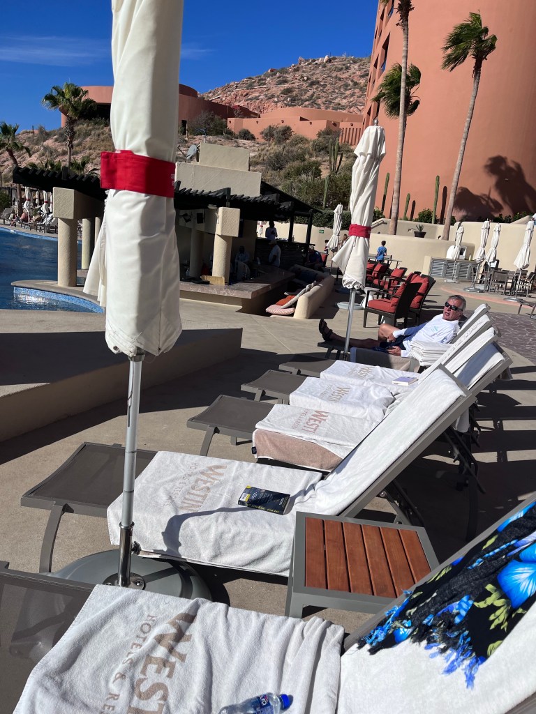 Today we got a great spot by the bar. So it was in and out of the pool all day!