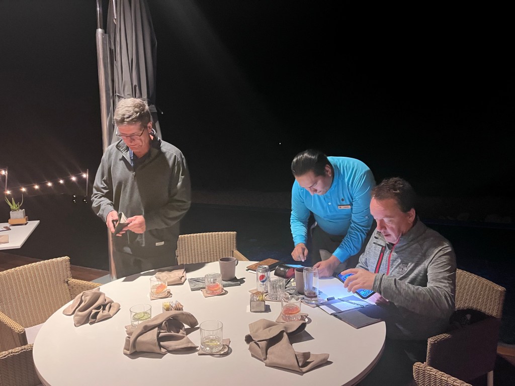 Dinner was an Uber ride then a golf cart around the resort to get to a really fancy restaurant!