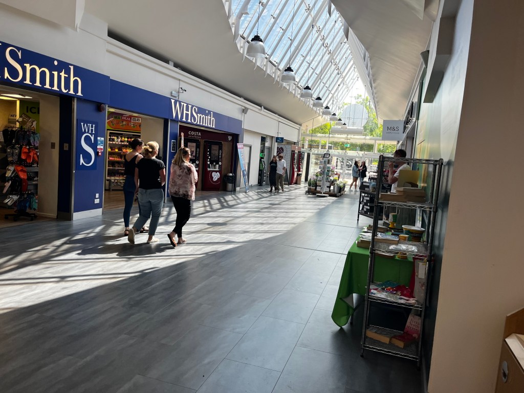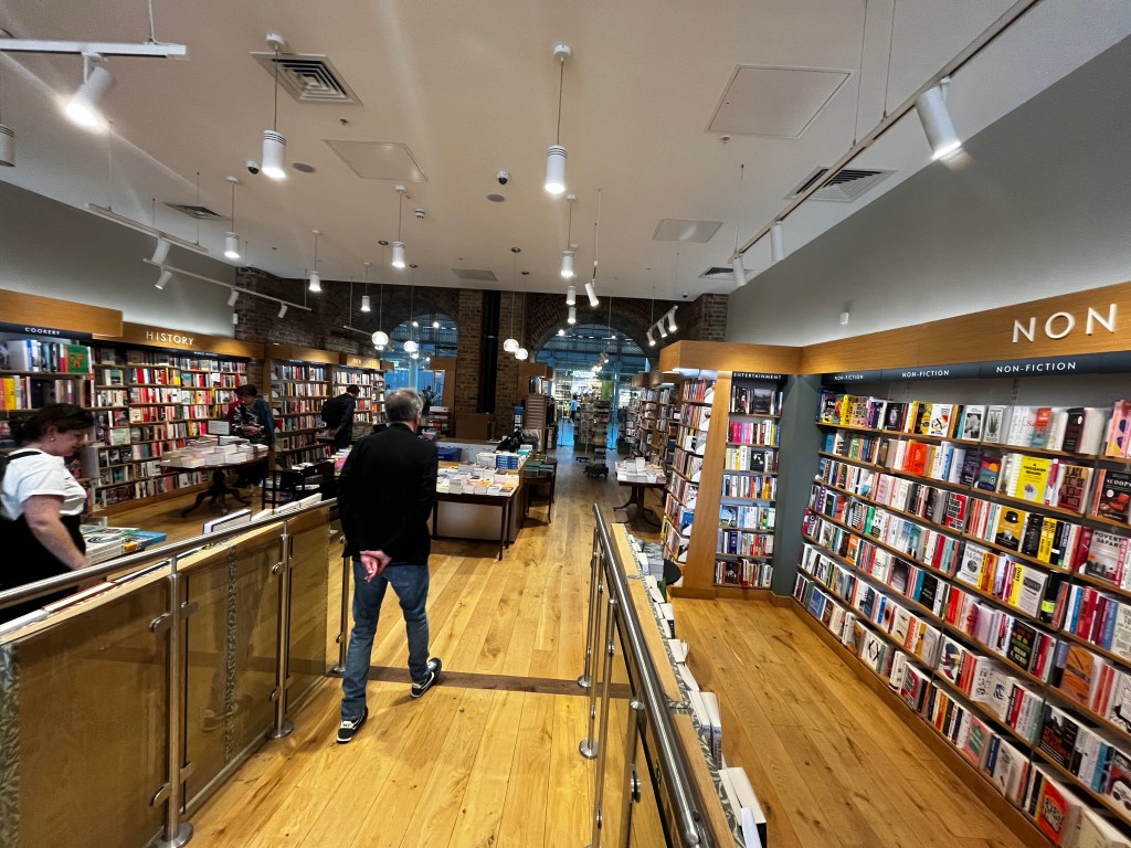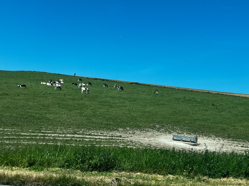 Cows on a hill. Who knew they had such good balance. We had to stop just outside of London to fill the tank and grab coffee and food. I also saw some books I wanted but I didn’t buy them.