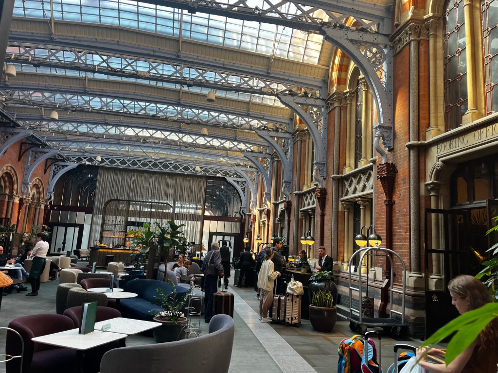 Finally we arrive! St Pancreas Renaissance Hotel opened in 2011, and occupies much of the former Midland Grand Hotel designed by George Gilbert Scott opened in 1873 and closed in 1935. Rick Scott calls it one of the most romantic hotels in all Europe.