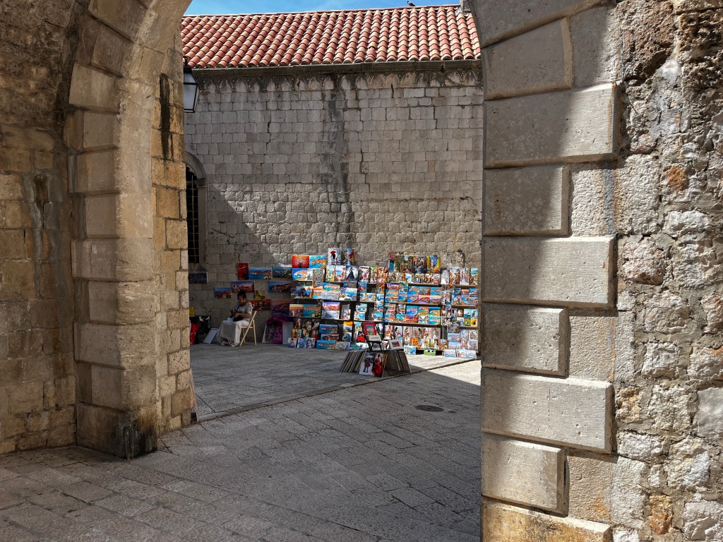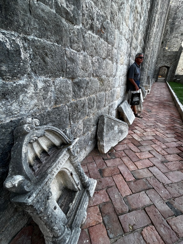 There were many pieces of buildings just laying around. Tom said they broke during weather conditions and have yet to be fixed or returned to their particular spot. So I said “Like the earthquake of 1667?” He said no more recent weather.