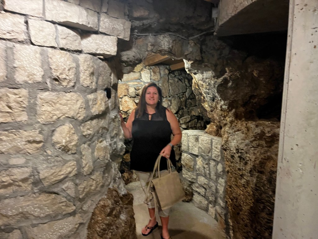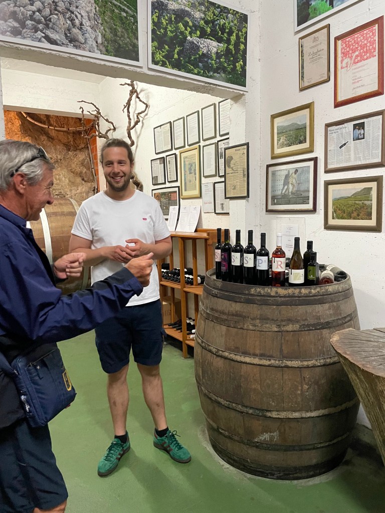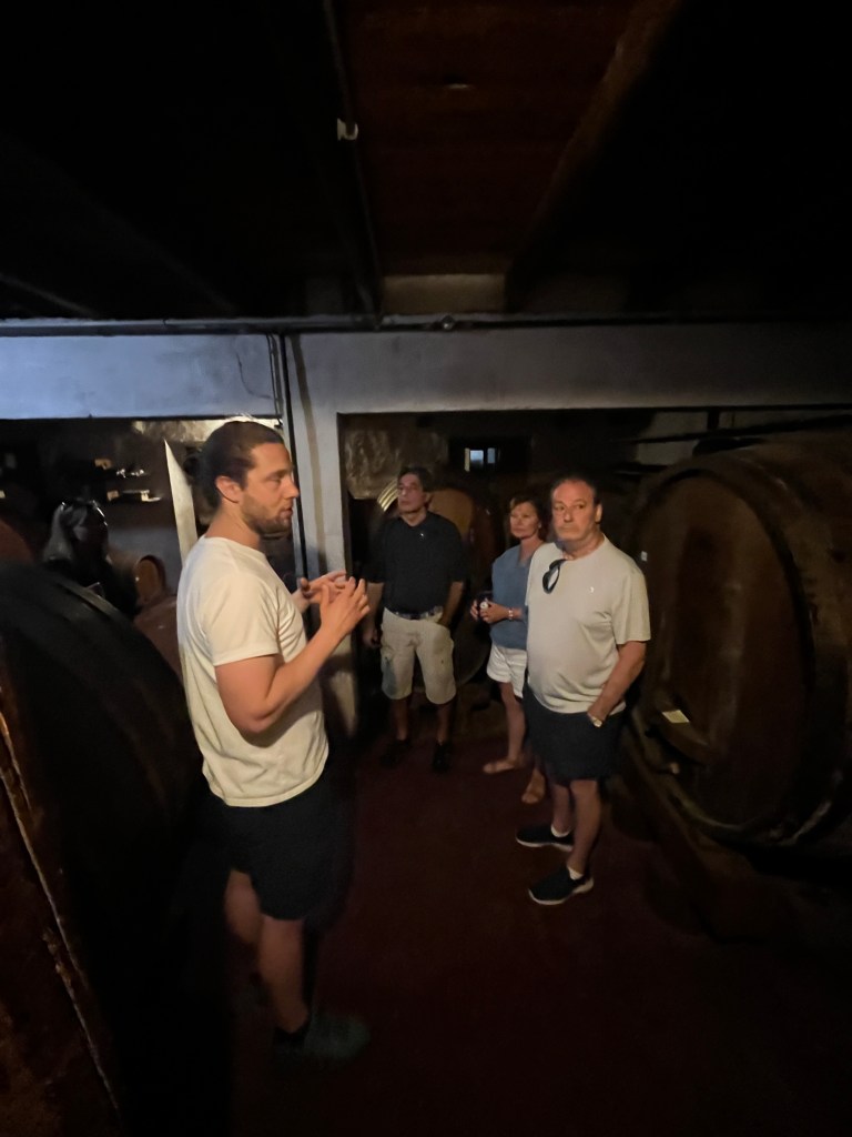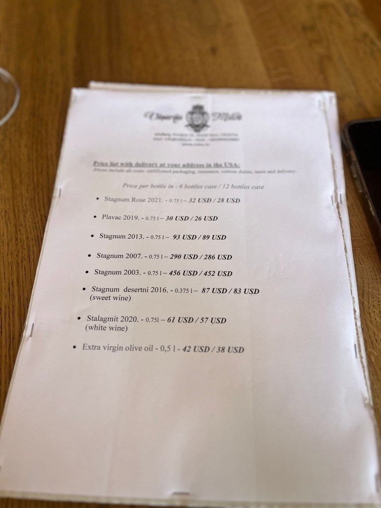 The views were spectacular but it was good to get out and stretch our legs a bit. The vineyard came up just in time! We stopped at Miloš Vineyard and did a tour and tasting. This is one of the oldest vineyards in Croatia and boasts the Plavac Mali grape. The Miloš family moved to the region about 500 years ago and have been making wine ever since. Two surprising things are 1) they are totally 100% organic and 2) they have no irrigation system and it only rains about 4 days in the summer.