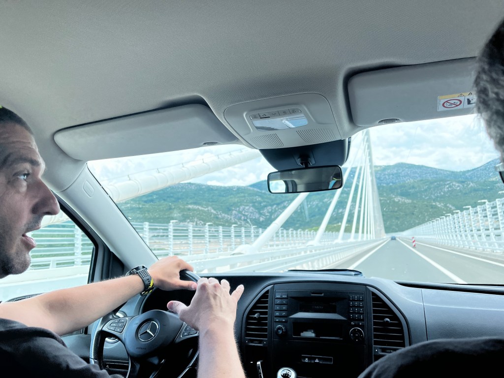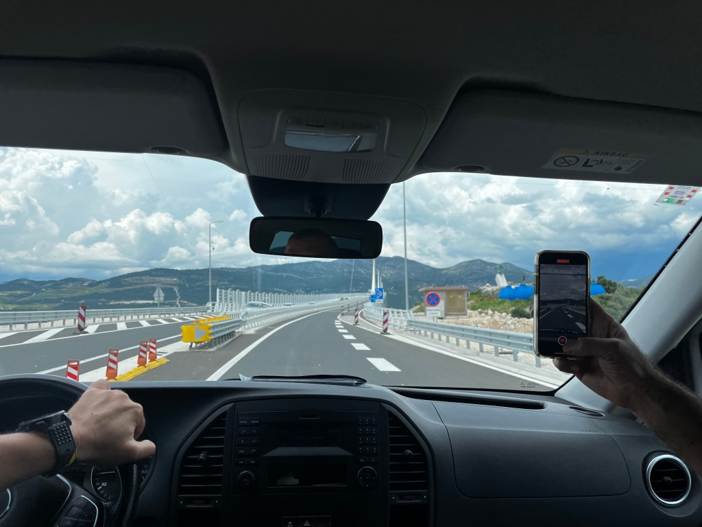 This bridge links Croatia’s southern Adriatic coast, including Dubrovnik, with the rest of the country, bypassing a narrow strip of Bosnian territory. It was only opened in July 2022. The driver, Peter, implied China built the bridge for Croatia and it sounded like Croatians feel that they are nice or good for doing it. But when I searched for an article on the bridge it said that Croatia and the European Union set aside 357€ for the 55meter high bridge that connected Croatias lower portion with their mainland.