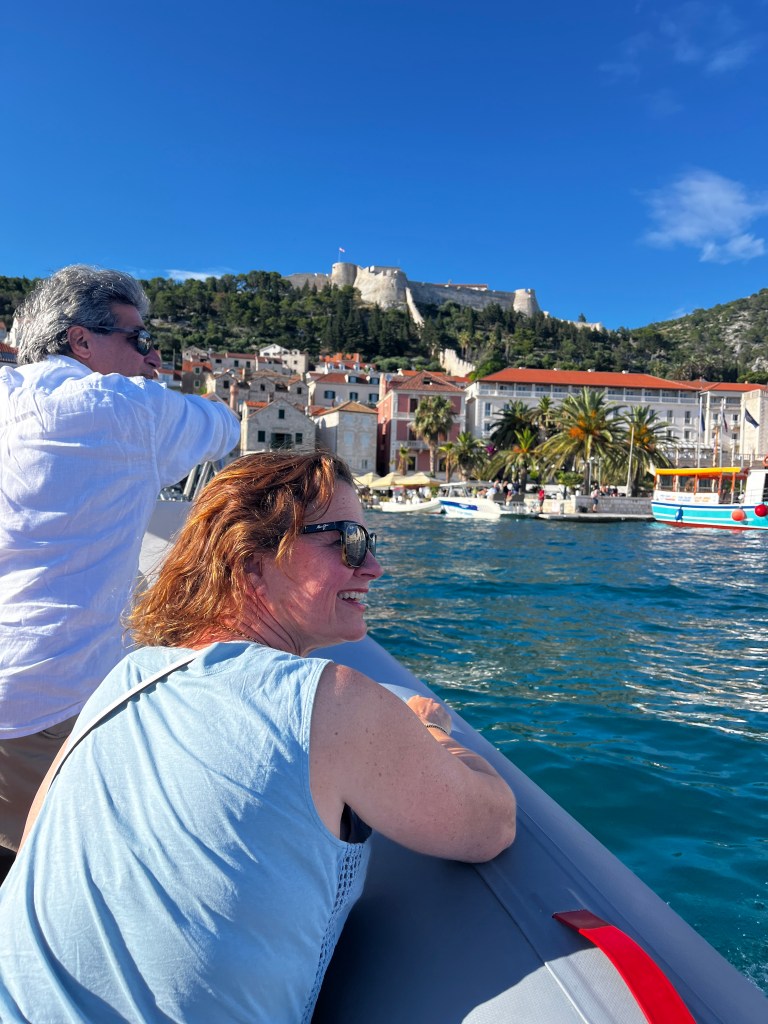 We took a water taxi, that was a large rubber boat, to get to Hvar.