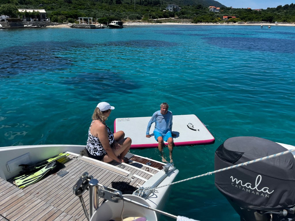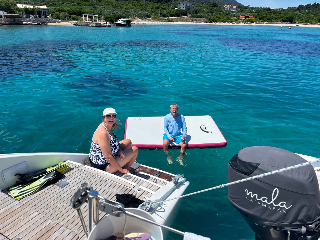 We are it to our spot where we can hang out and play with water toys! And so we played! I swam around the boat for some exercise.