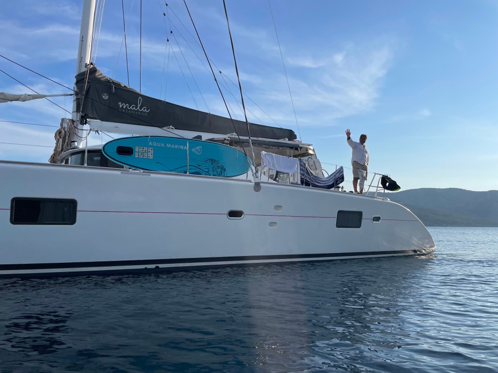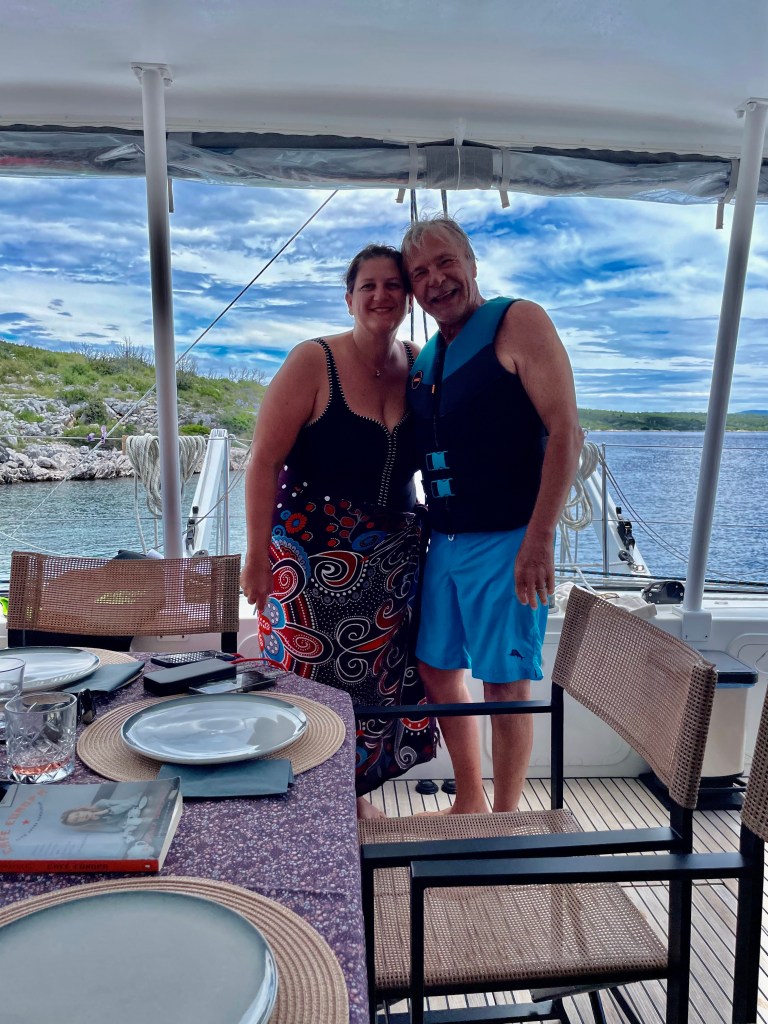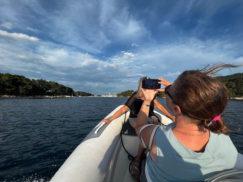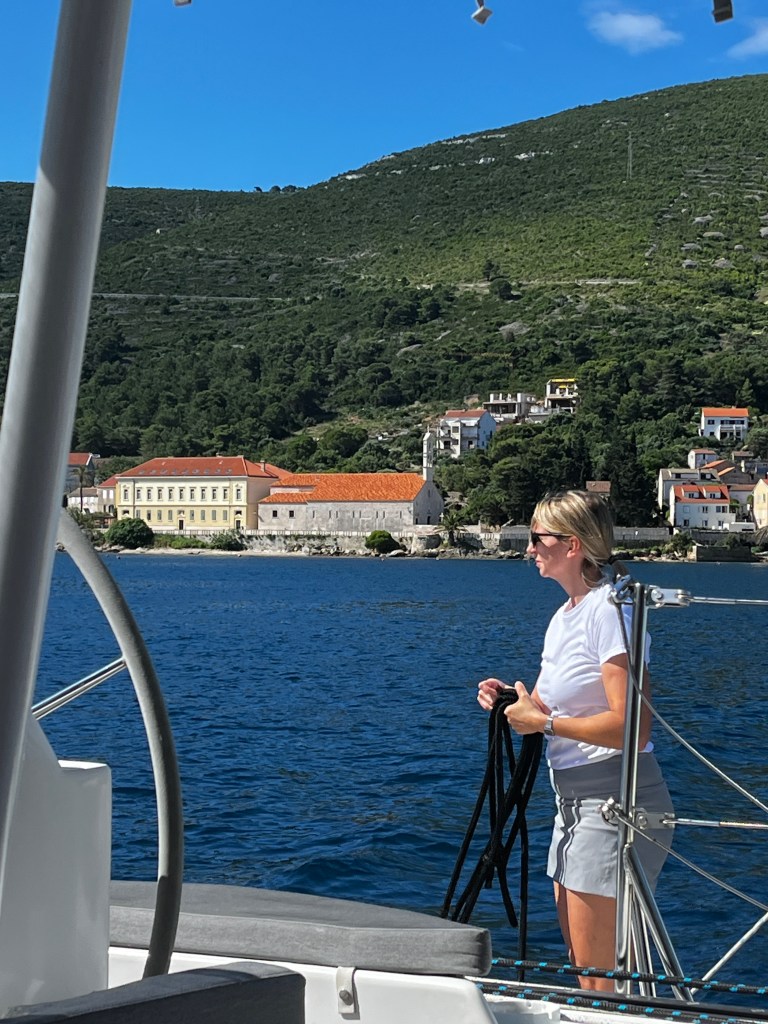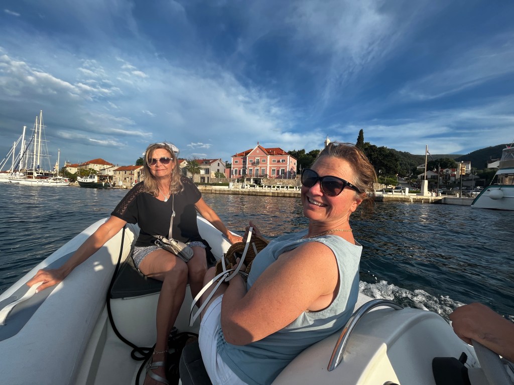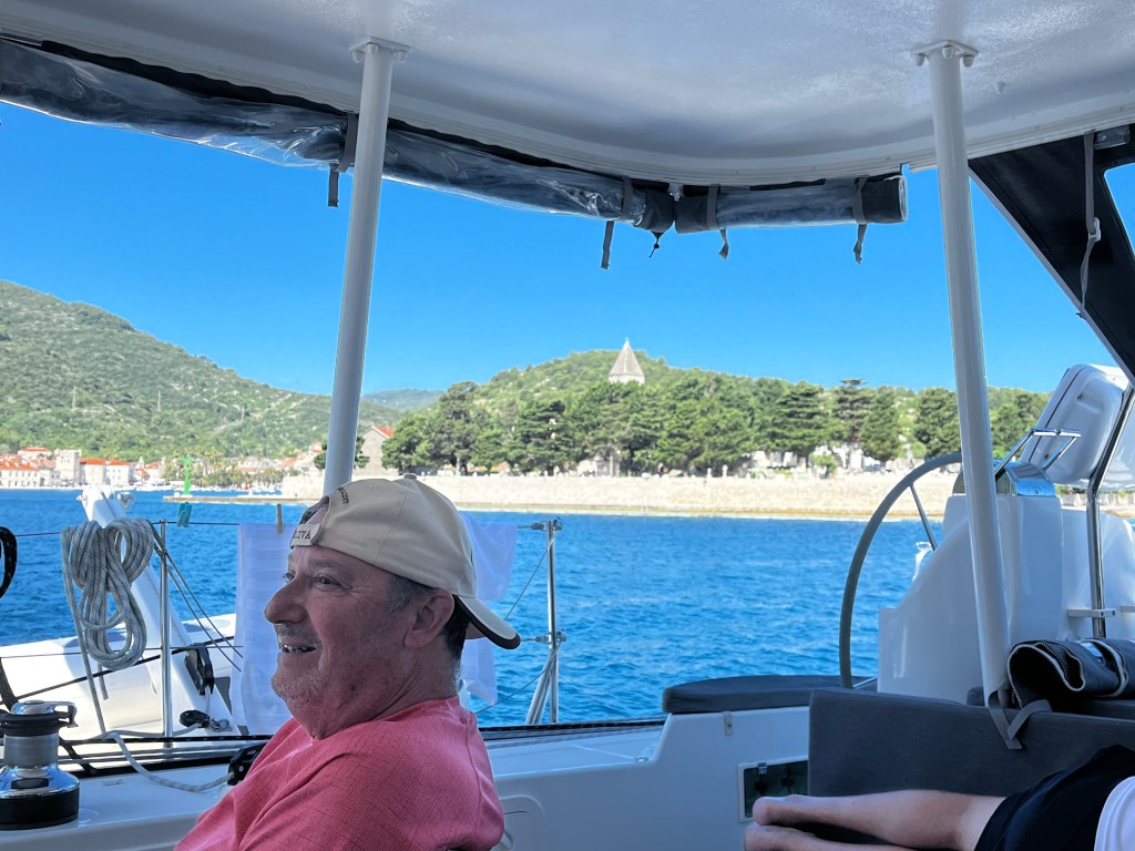 This morning we left Vis for a nice quiet spot where the boys want to try their hand at waterskiing behind Zoki’s tender. The bourse power was only 50 which isn’t a lot but they decided to try.