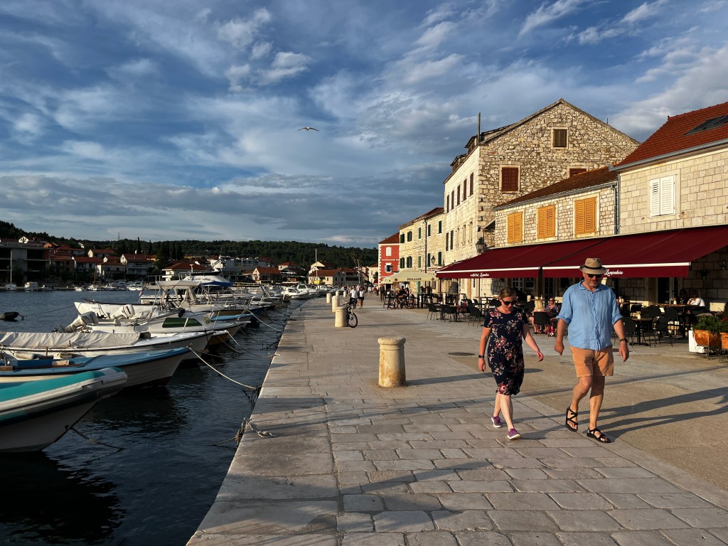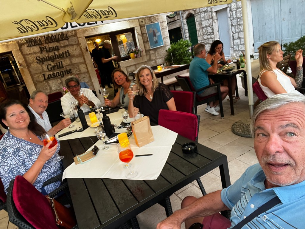 Nick found a great Italian spot for dinner and this dog kept us company. The people of StariGrad love tourist! The couple with the dog was here from Germany for their job in film making!