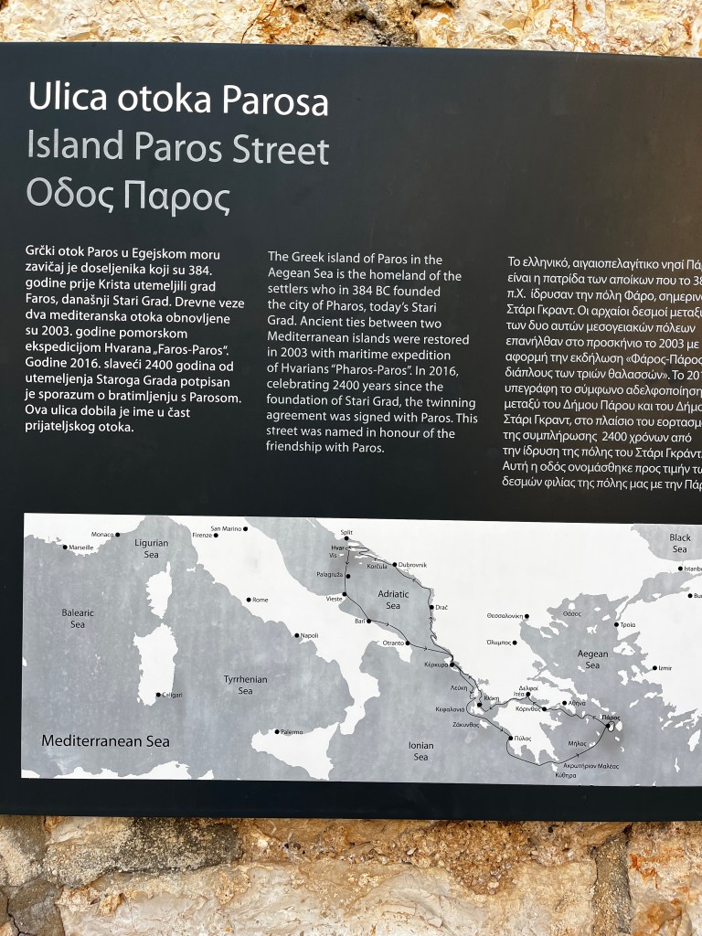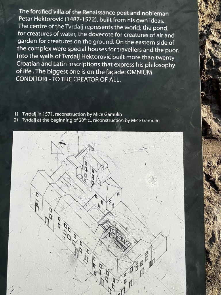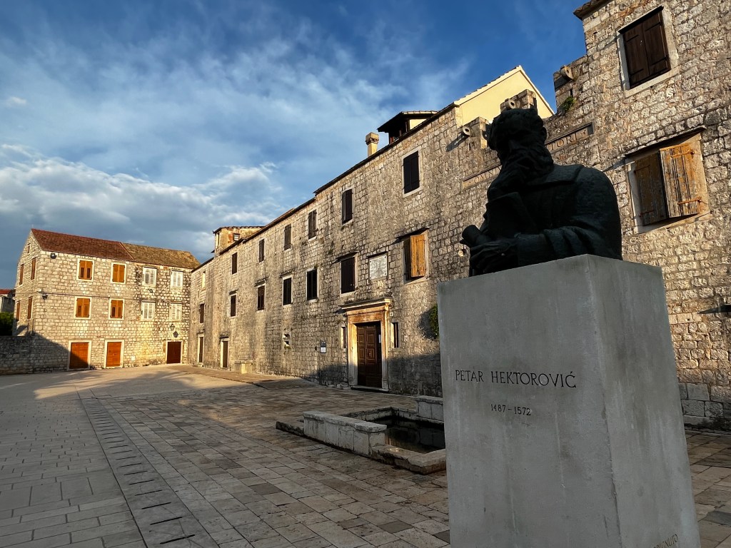 This city’s claim to fame is the massive home of Peter Hektorović (Renaissance Poet). He had over 20 quotes chiseled on the walls! He was best known for his poems about fishermen and the island and areas of Croatia. In the poem the narrator—the poet himself—describes his journey across Adriatic islands and recounts events that he and his co-travellers experienced along the path. The narrator, great aesthetic and sensitive to beauty, often describes the landscape the company sailed through, admiring the beauties of his homeland.